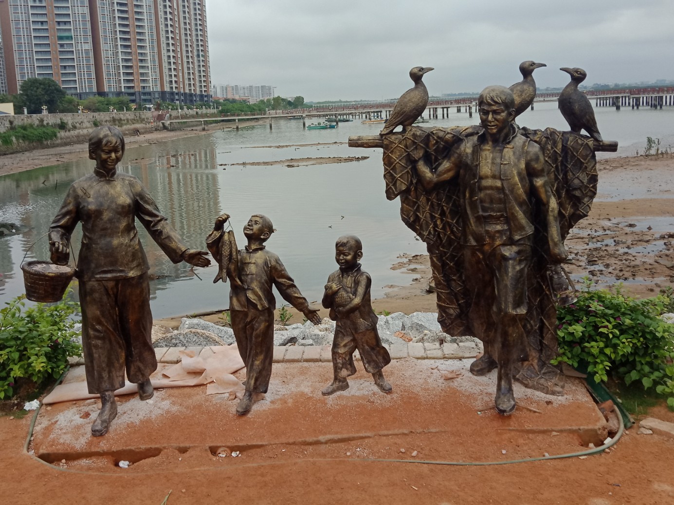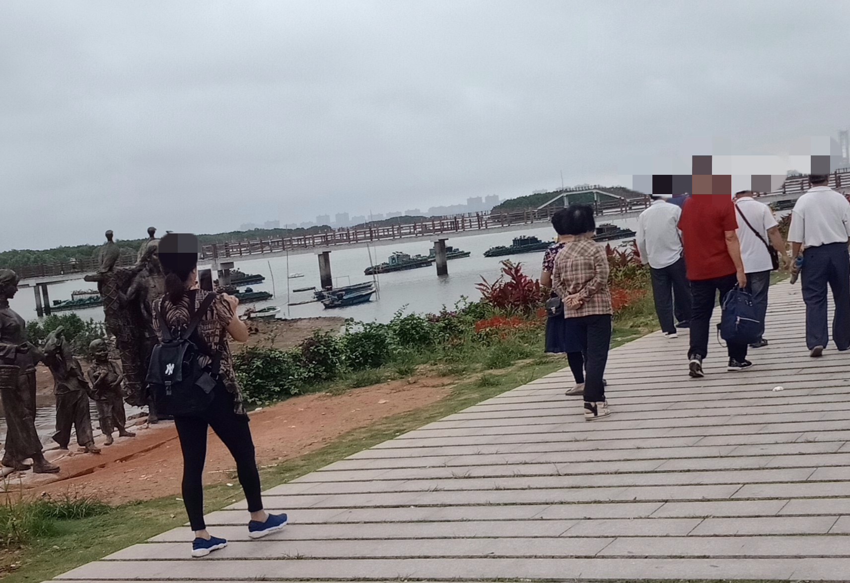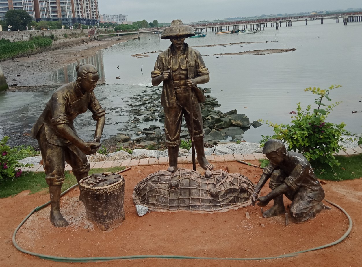 还发现好多游人游客也包括他她们都挺喜欢在这些有渔民渔夫海上生活作业等代表性的塑像前照相,奢望能再配置多些高大尚的,还有白天可看见,但晚上就唯有用手机灯光照看一小部分了~能装上些古典.西式灯光灯饰等就太好了~