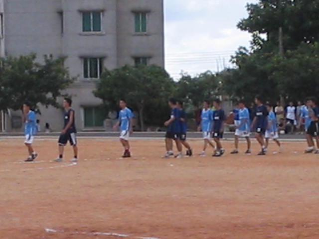 经过一阵热烈的掌声后..两队的队员也回到自己的阵地了