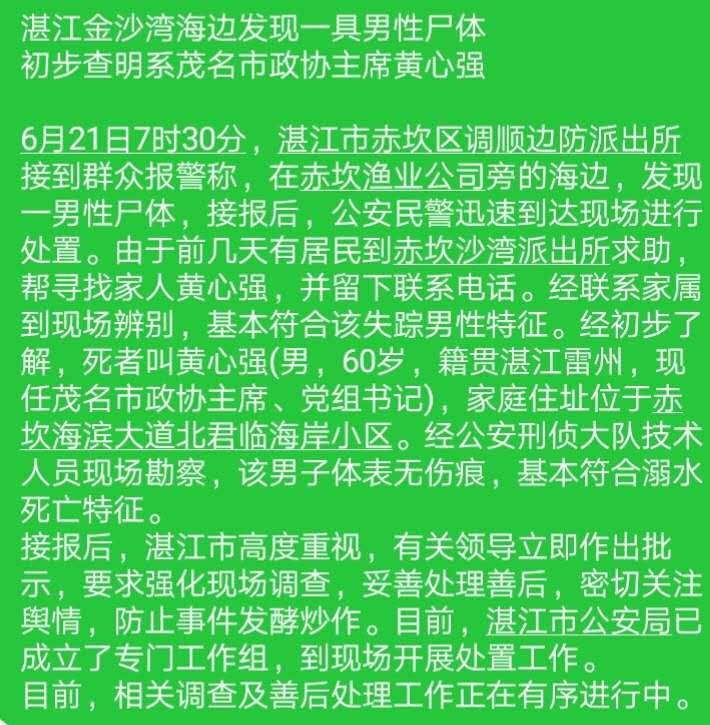 其他 市政协主席黄心强自杀身亡?