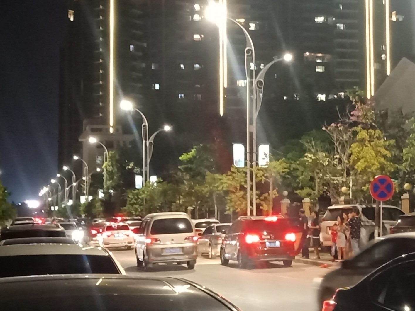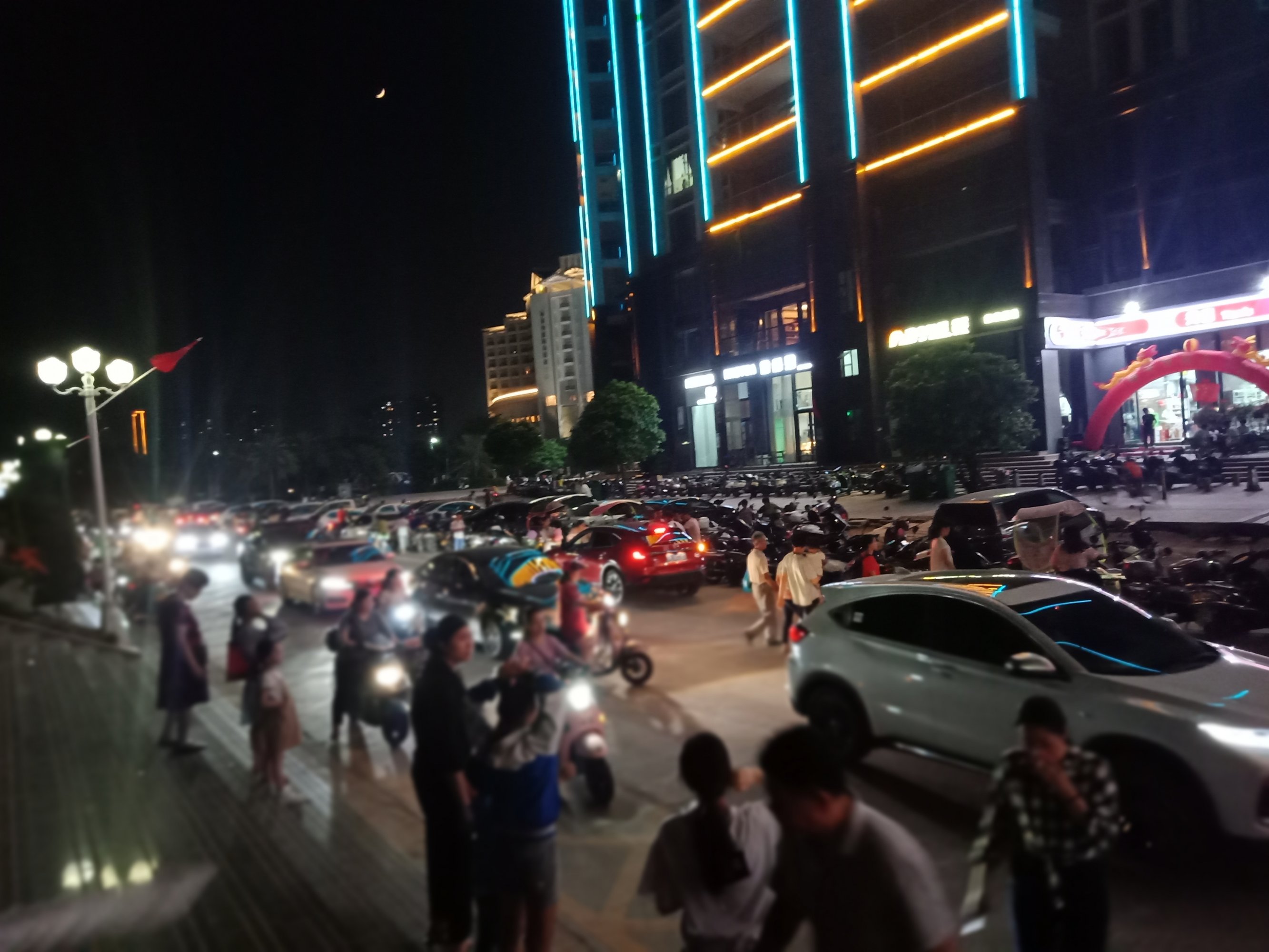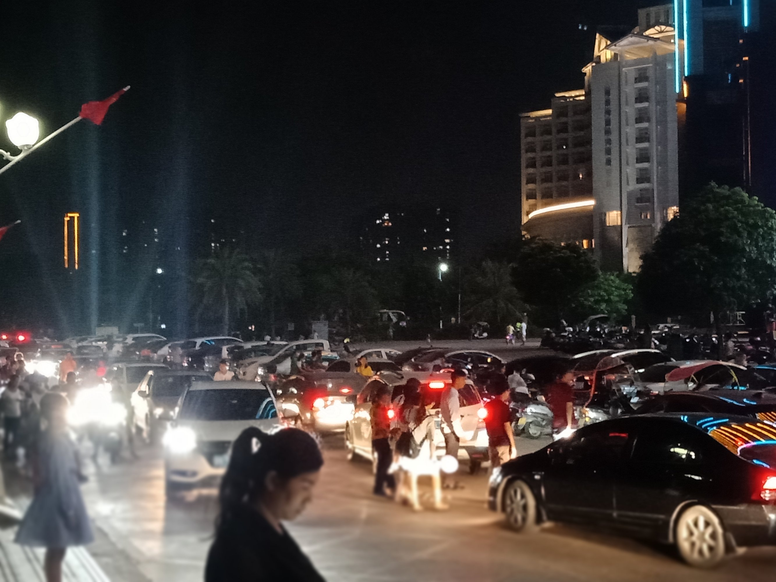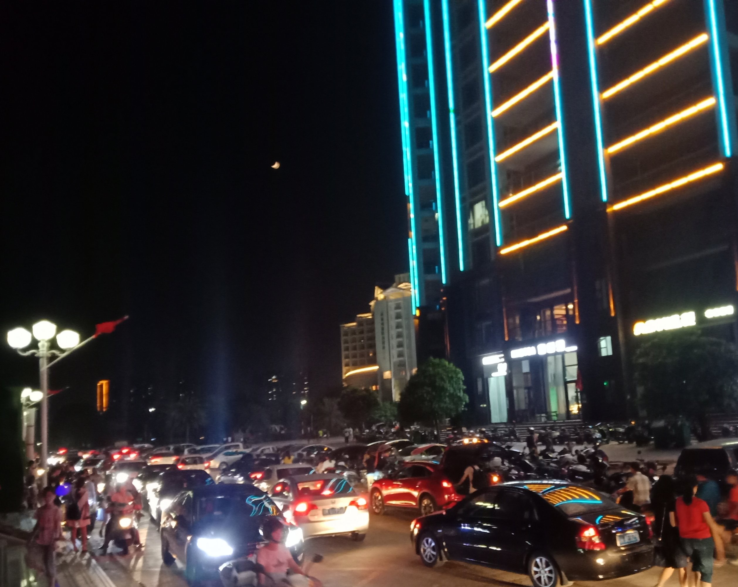 不过平常傍夜晚也挺热闹的,只不过这节假日人流车流特增多点而己,不过节假日嘛,挺正常,无论哪个地方都这么热闹的