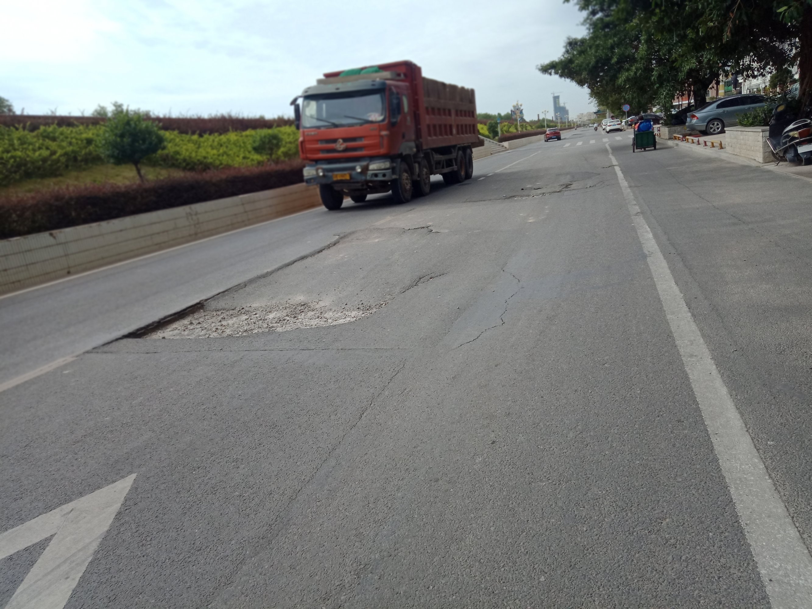 那条路虽有大车经过,但还是比较少的,道路质量问题