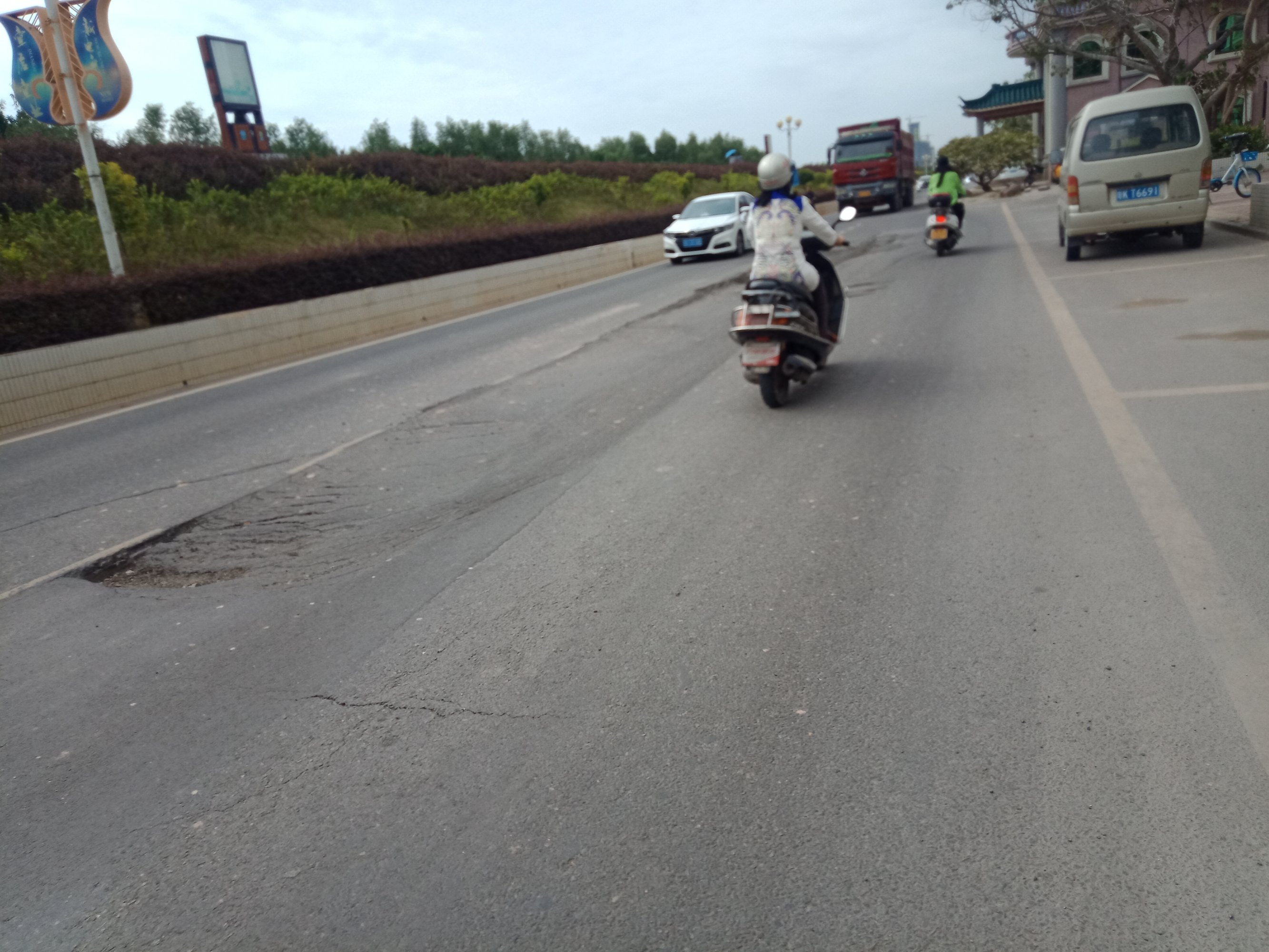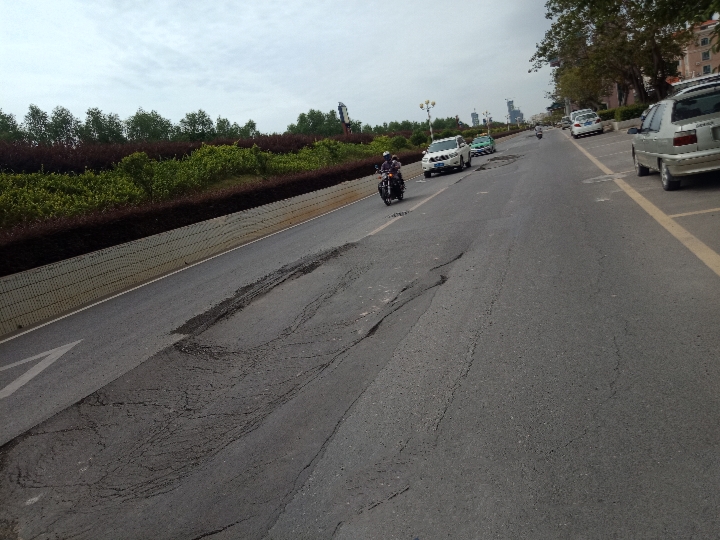 交流 位于海堤星汇湾至东湖这边路面沥青有上翻痕迹