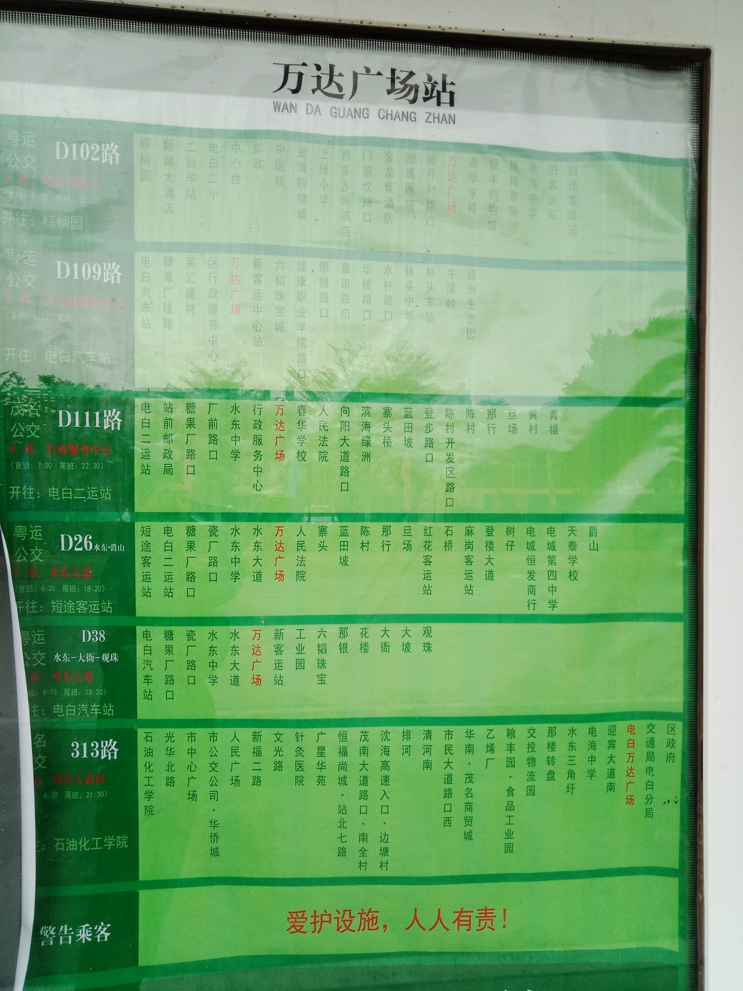 万达广场站公交线路图