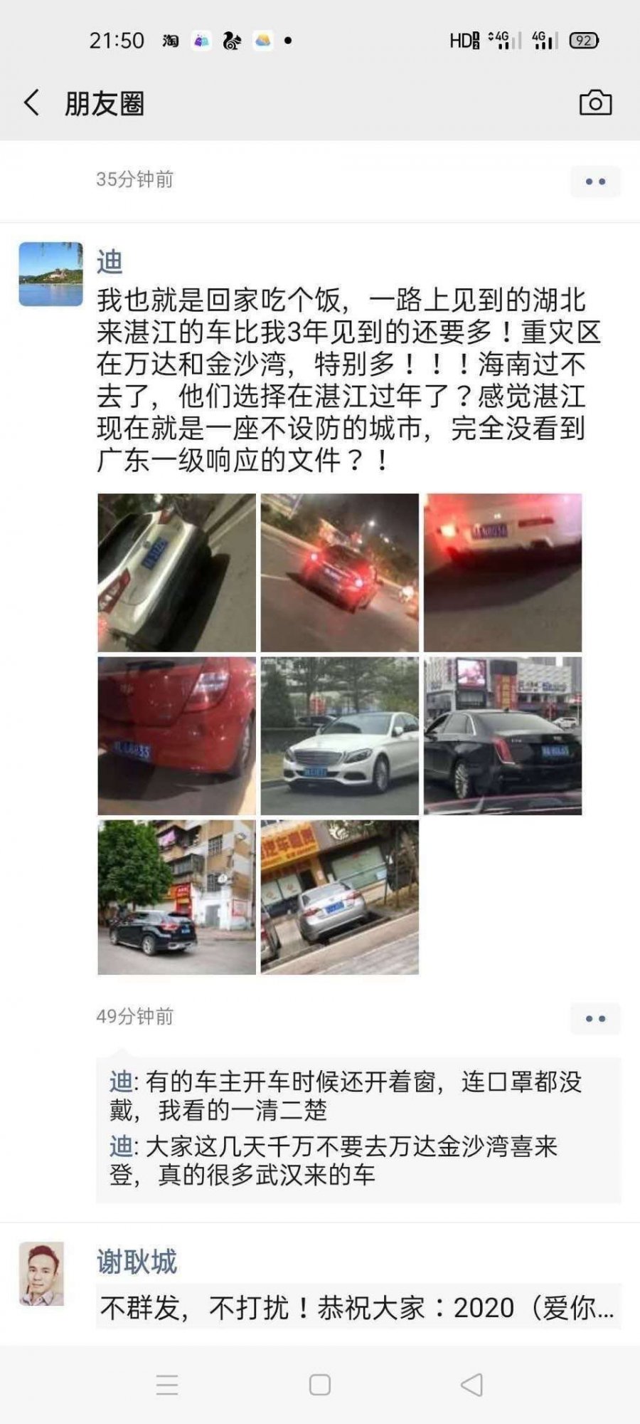 大家一旦发观有湖北车牌也要举报到相关部门,瘟疫是不分你我的。