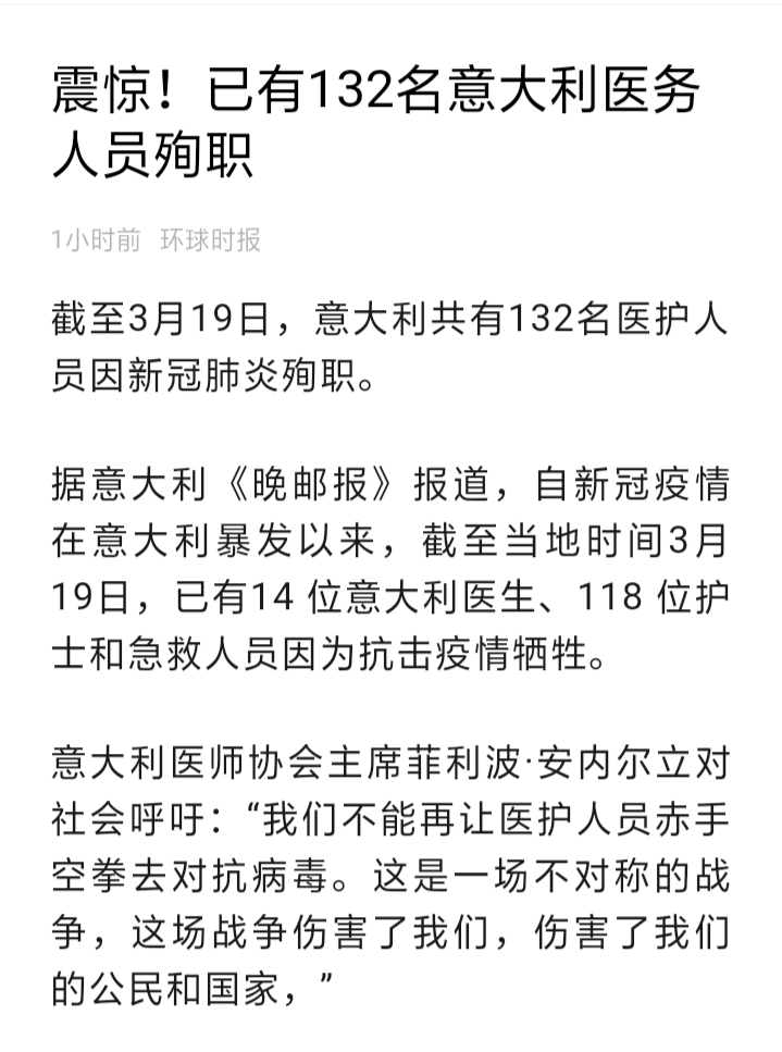 这意味着,中国人正在用自己同胞的命挽救意大利人民的命!