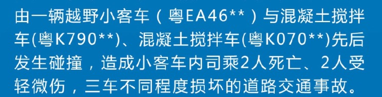 电 电白一中不能少 小学一年级 注册 2018-05-28 消息 130 反馈评分 27 点数 11 性别 女 2020-03-24 #373 水碧山青 说: 一目了然,过程详细,你这个水平怎样保护一中? 浏览附件340583 小车与两辆混凝车(先后)发生碰撞,注意是先后,先与前一辆碰撞,再与后一辆碰撞 点击展开... 现在公布的通报才讲清楚事故发生的过程!