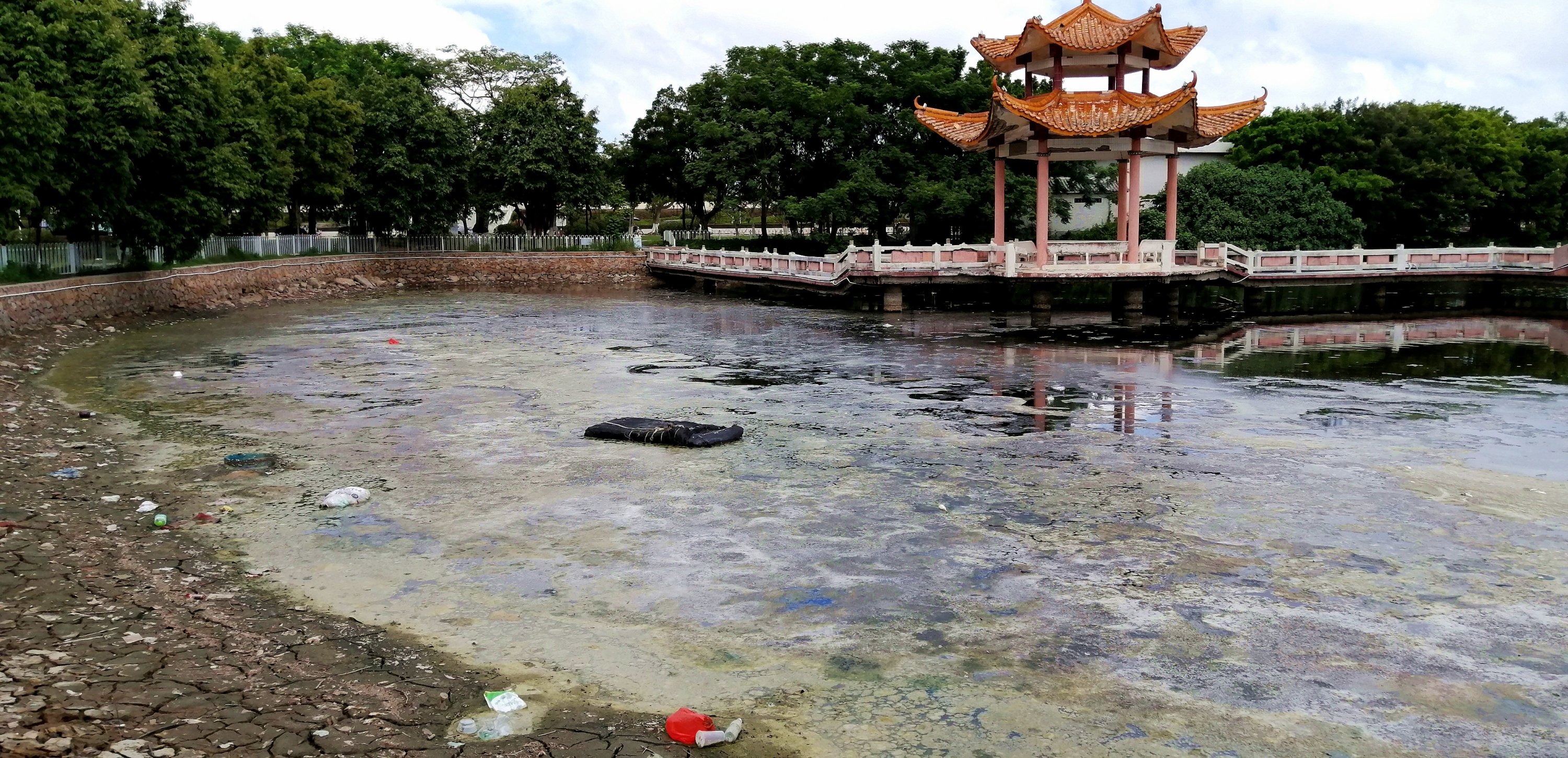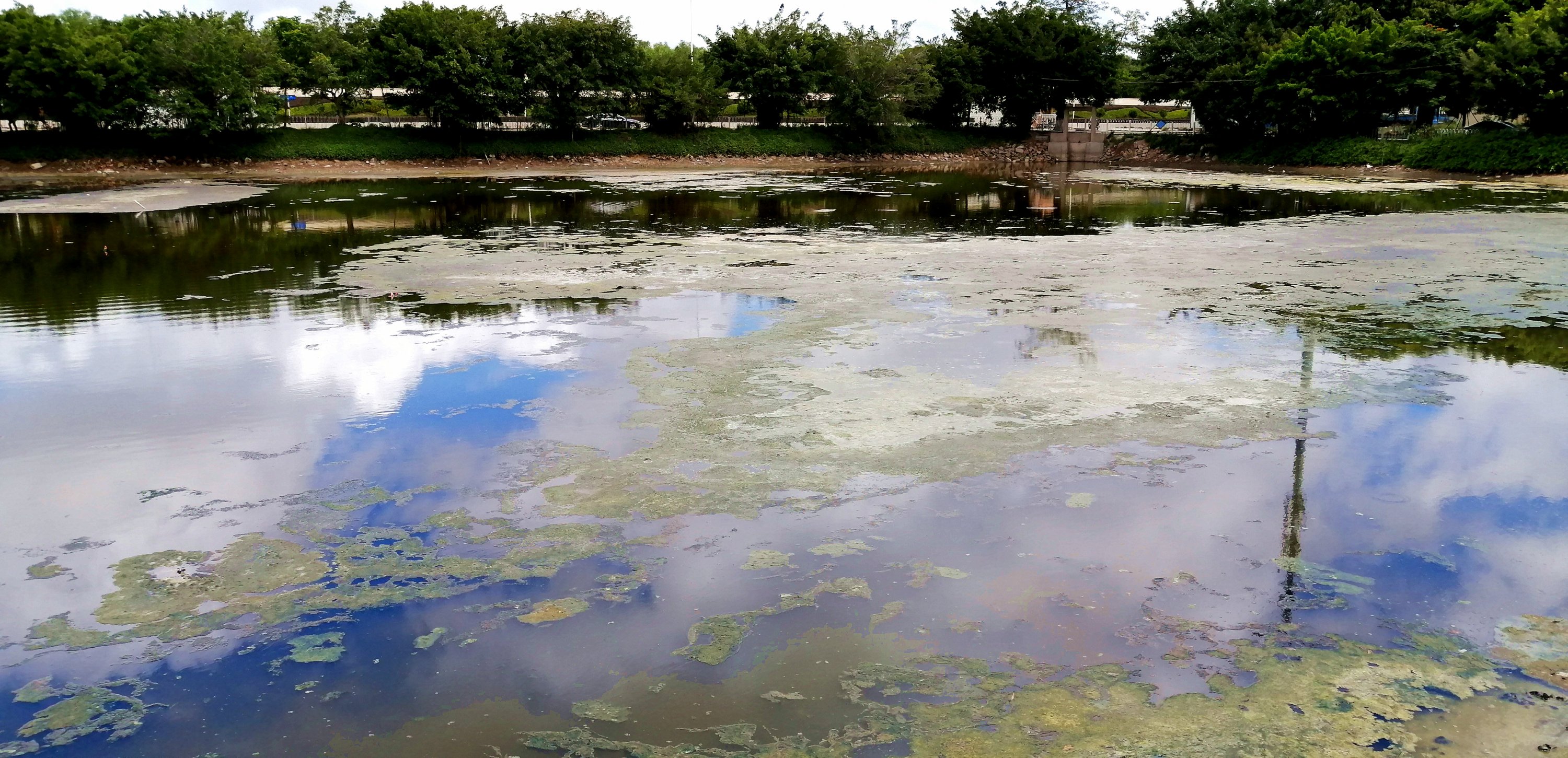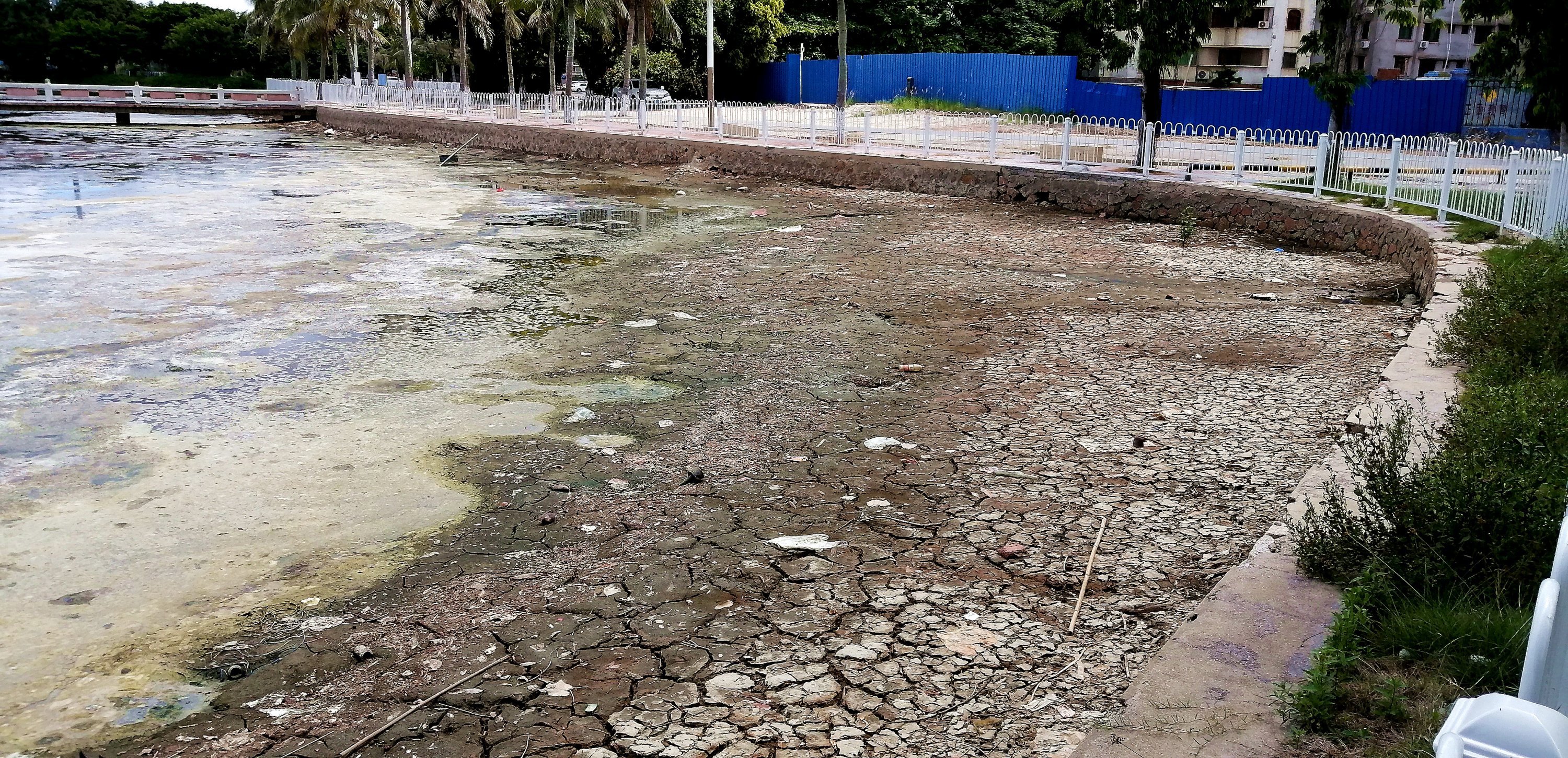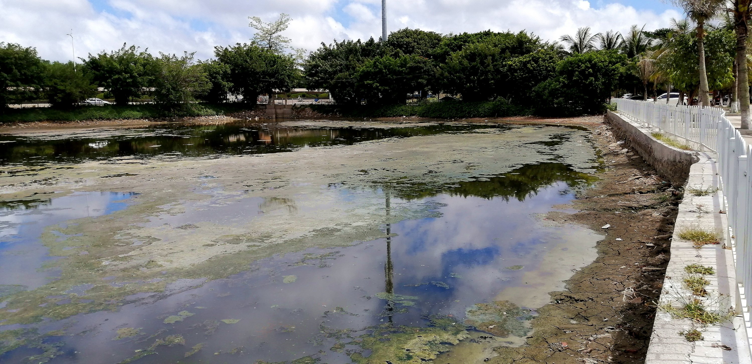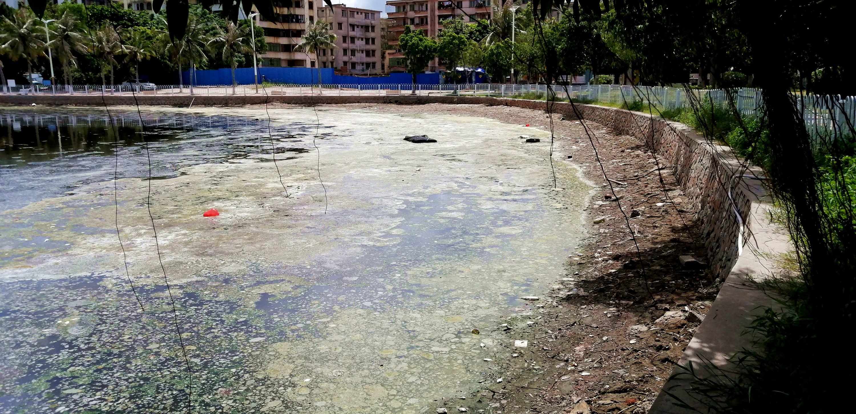 东湖臭水塘应当清除淤泥,应付检查用海水浸不是长久之计。也不符合双创文明的宗旨。