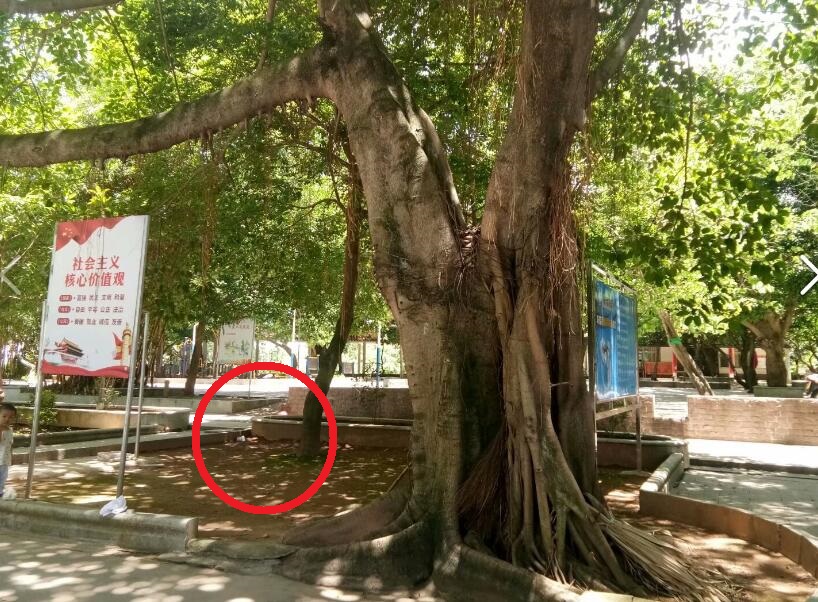 化州宝山公园。红圈处曾埋葬着4个死于1968年化州武斗的青年。