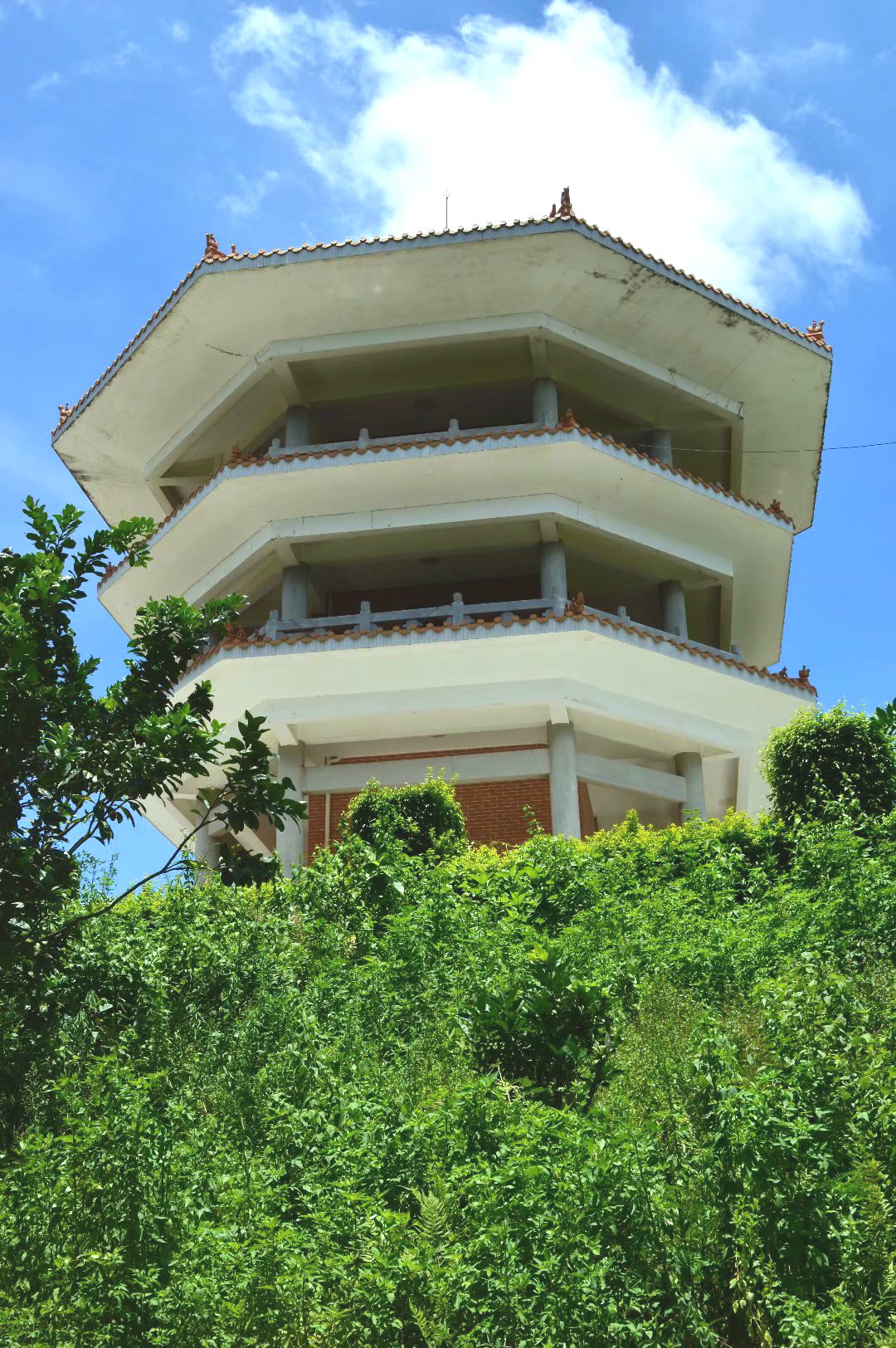 远望狮子岭最高峰的多角风水楼……