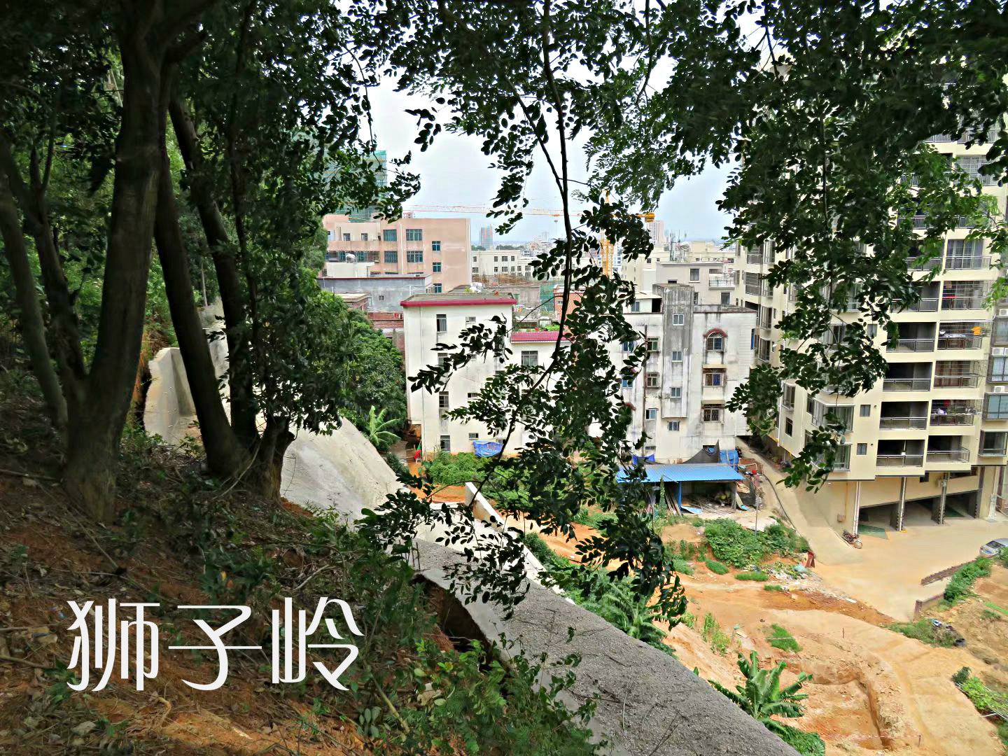 化州市区的宝山,这是作者从山顶往下拍摄的照片,下底是繁华的中山路,目测陡度有50度角。