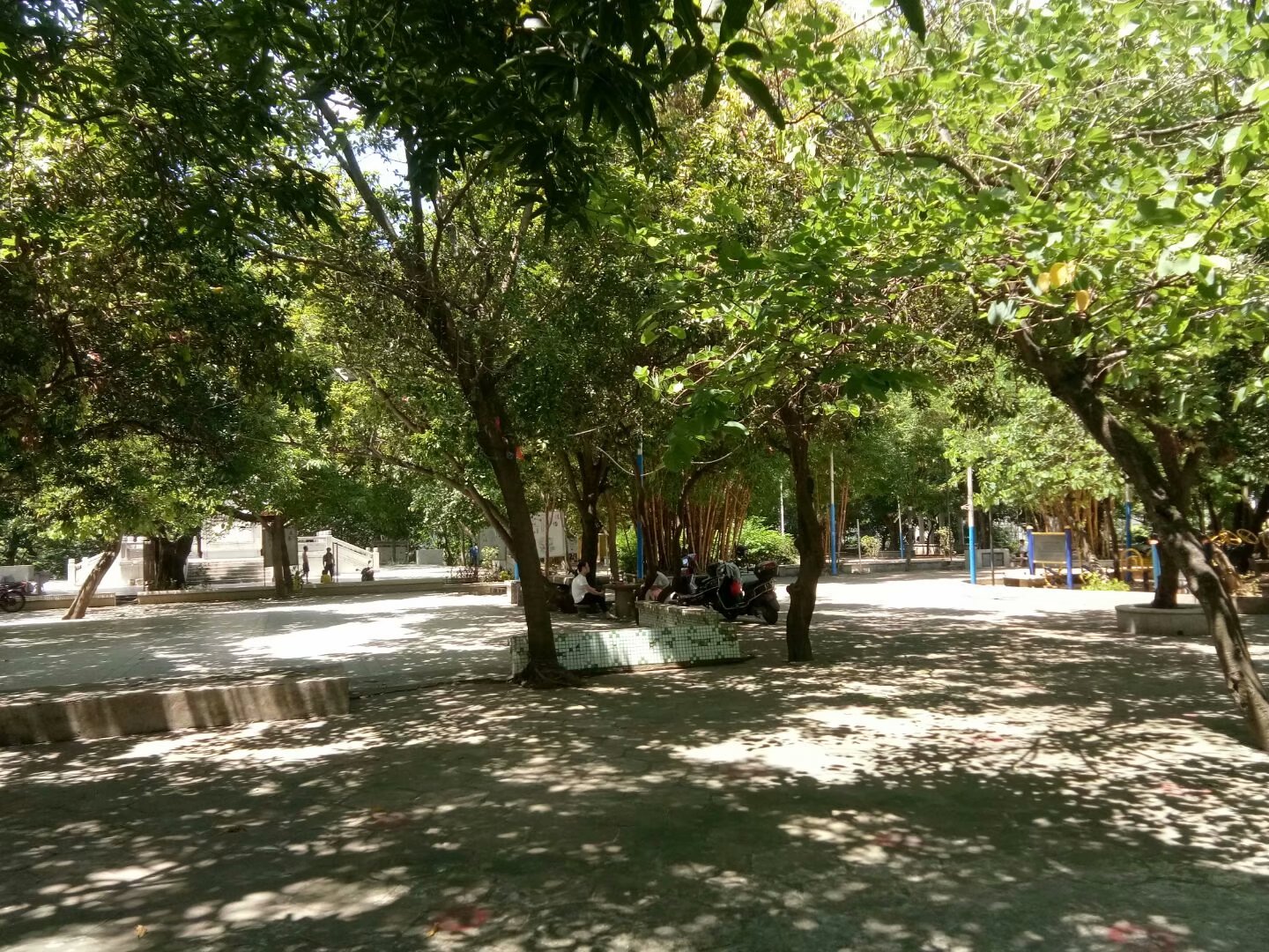 如今的宝山公园已成为人民休闲的地方。有红圈处是那四个青年死于武斗的坟墓遗址。我认识的同届校友苏中强,他父亲是湛江警备区司令部副司令苏观保,苏中强的胞兄苏朝新等5名旗派吴川中学生在1968年6月30日战死宝山。