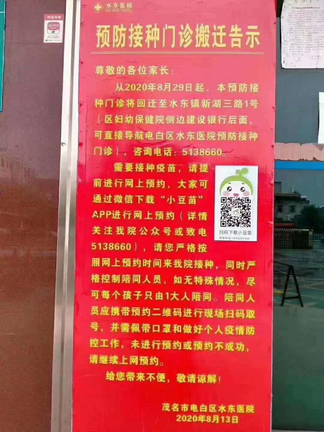 根据省疾控要求,指导部门不能开展预防接种业务,所以接种疫苗业务早就不是区疾控中心的了,业务早就已经移交水东镇医院,八月底已经搬到原妇幼旧楼了。