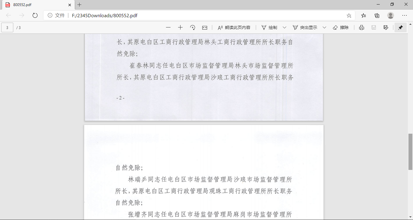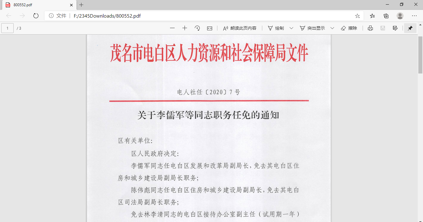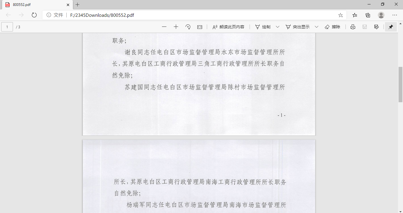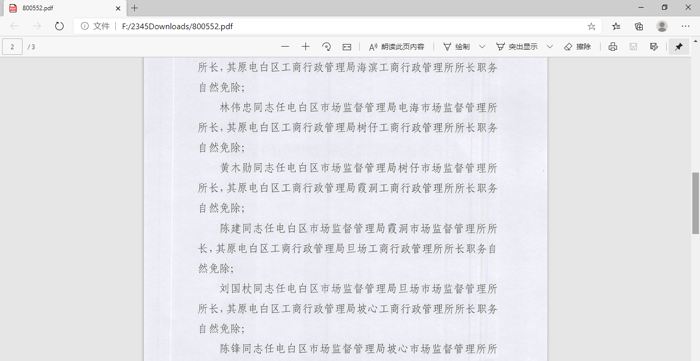 据茂名市人民政府网站消息:电白区一批市场监督管理所所长今年被调动,见截图证据。虚假违法广告办案方面存在历史遗留性问题,如电海市场监督管理所(原海滨工商所),但所员未变动(本人对此今天还向茂名市纪委监委发了一封举报信),可想而知后事如何。