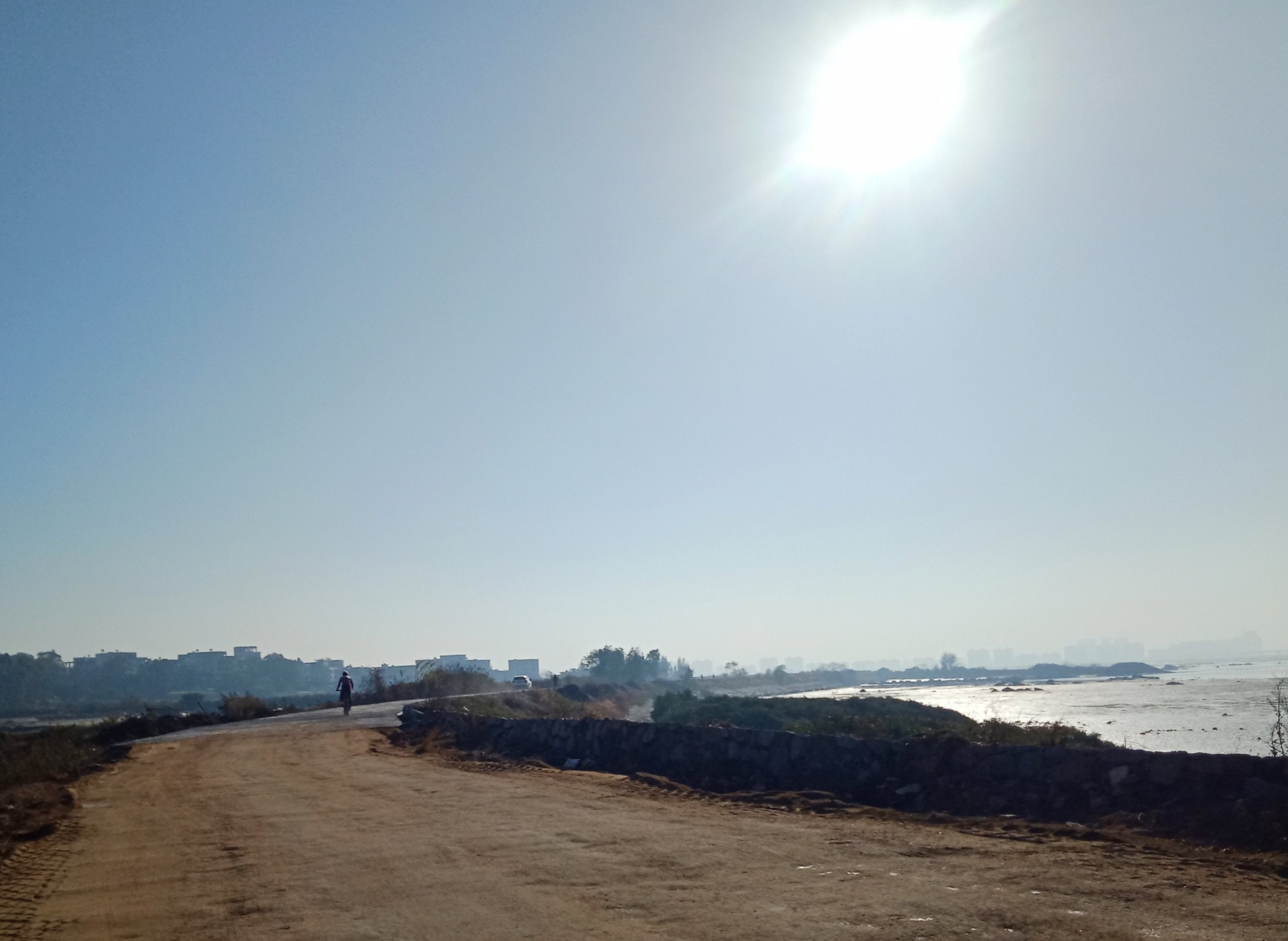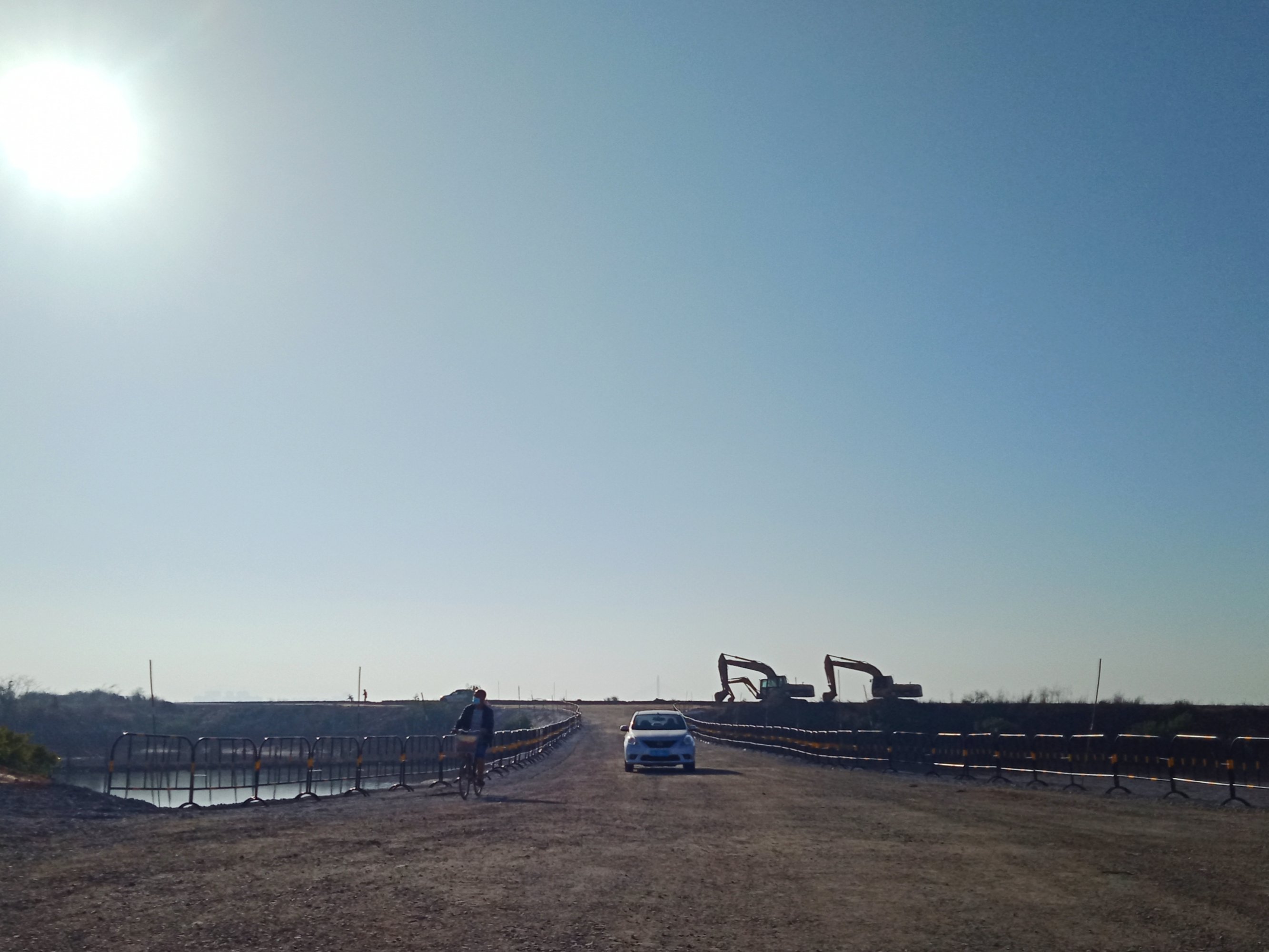 今天试走,从登步大桥到旦家仔,路况可以,没有烟尘,几分钟便到达旦家仔,方便快捷。 又从登步大桥去碧桂园,开始一、二公里弯曲如羊肠,石粉路面,汽车经过尘土飞扬,感觉会伤车碌。到达海堤路段,有钩机在做工,指示我们折回头,以致未能走全程。
