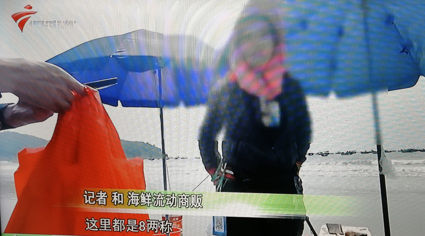 3.15 电白上了珠江台头条新闻,珠江台播出记者暗访沃内海摊贩出售海鲜短斤缺两的新闻。