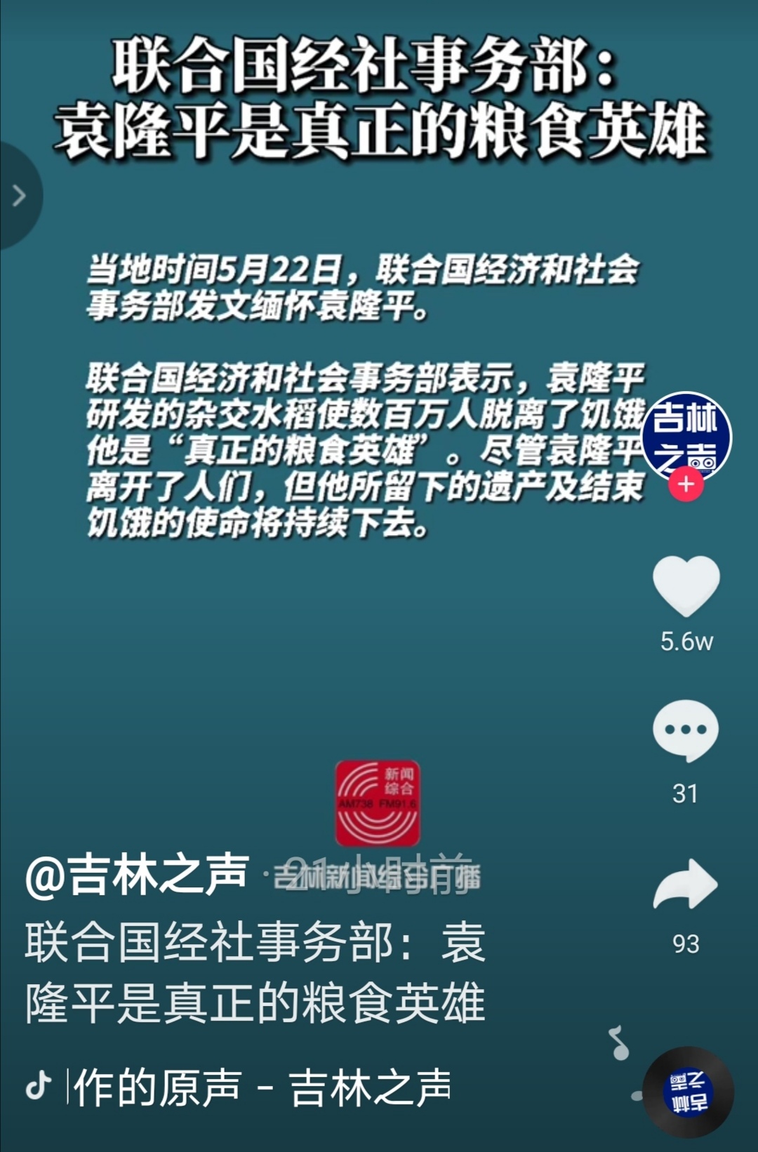 小石龟 荣誉主席 注册 2020-09-30 消息 8,284 反馈评分 323 点数 191 年龄 50 性别 男 2021-05-23 #18 绿城风景 说: 浏览附件350011 浏览附件350012 点击展开... 袁老留给我们最大的遗产远远不止一个杂交水稻,而是,一个终生无党派科学家该有的气节,誓死捍卫的科学信仰!