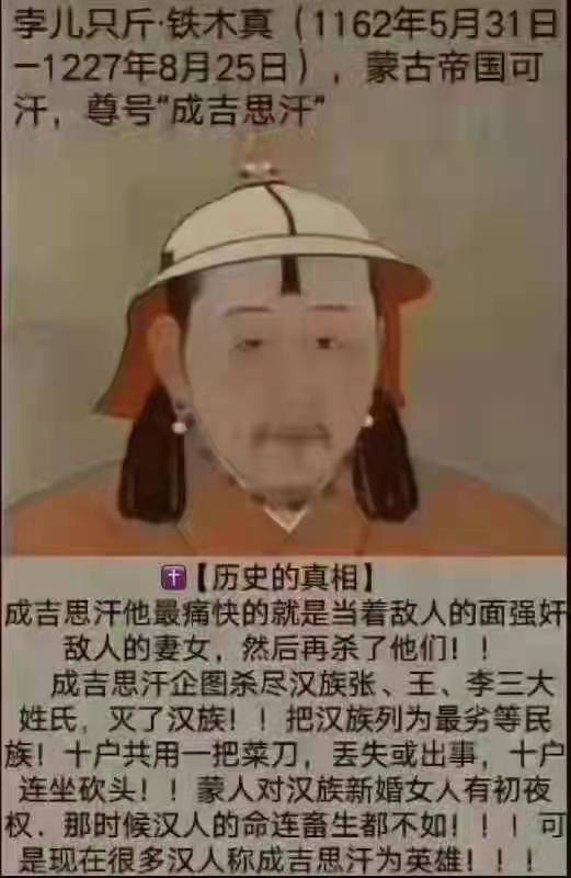 胡汉三 说: 浏览附件352284 你说得有点像被强盗强奸后说,是我把他的衣服脱掉的。生下个儿子认贼做父。 点击展开... 我回答你元朝占领中原后由游牧生活转变为农耕生活,汉化了。难道这一说法不是真的吗?怎样在你看到我这个回答就变为"强奸、生下儿子认贼做父"的说辞了,真是乱弹琴。你可以直接说成吉思汗屠杀汉族人,是汉族的仇人,但这又是另一个话题了