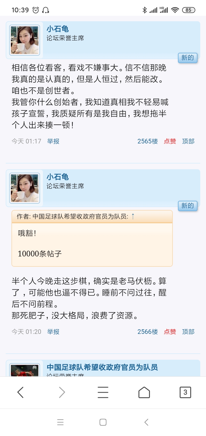 中国足球队希望收政府官员为队员 荣誉主席 注册 2009-03-09 消息 4,928 反馈评分 179 点数 101 2021-11-06 #98 lj_sky 说: 看样子,是战场贴被锁后,酣战的各位趁余兴来这贴继续的意思? 窃哥应该发挥专长,把那贴的锁偷了,开贴让各位可以在上面每天三百回合 ;) 点击展开... 袁隆平爷爷让我们吃太饱了,太闲只能吹水,指点江山。