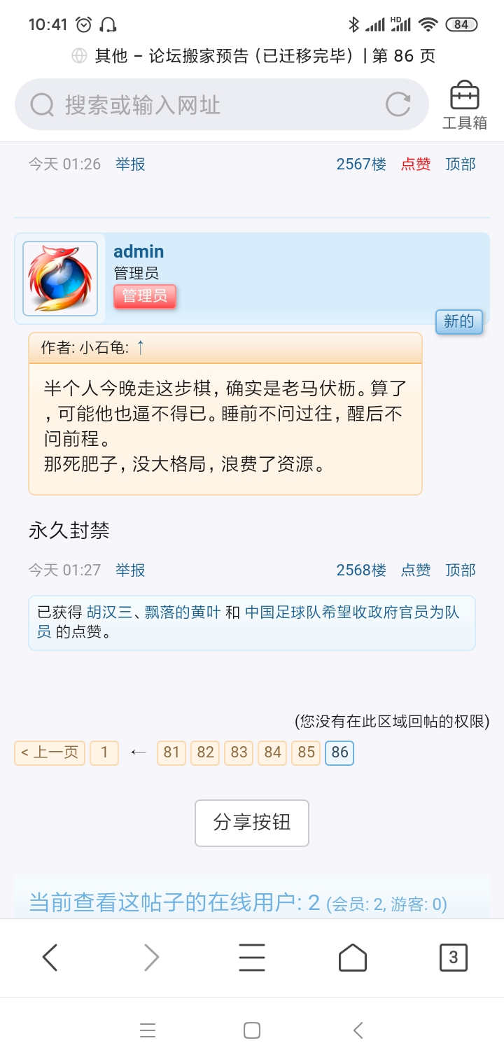 长风破浪 教授 注册 2006-12-25 消息 3,600 反馈评分 166 点数 101 性别 男 2021-11-05 #79 东水佬 说: 小石龟你今天走错此步,我真为你感到可惜,从此消失,千辛万苦才谋个荣誉主席,太不容易了,怎么会犯如此低级的错误呢?作为网友,,你虽然从此消灭,但总让大家牵肠挂肚!小石龟从此永别了! 点击展开... 小龟是步李某迪的后尘!