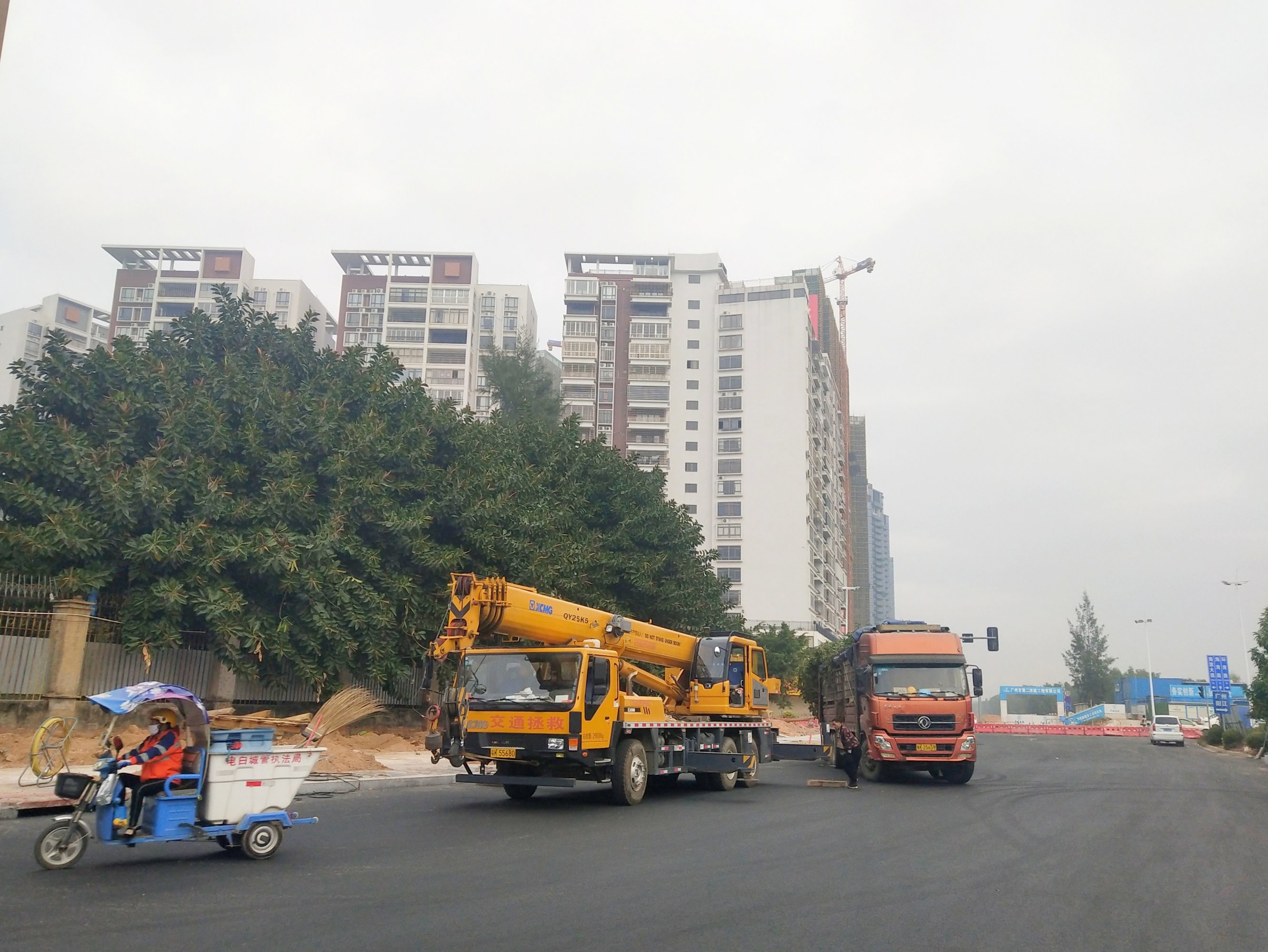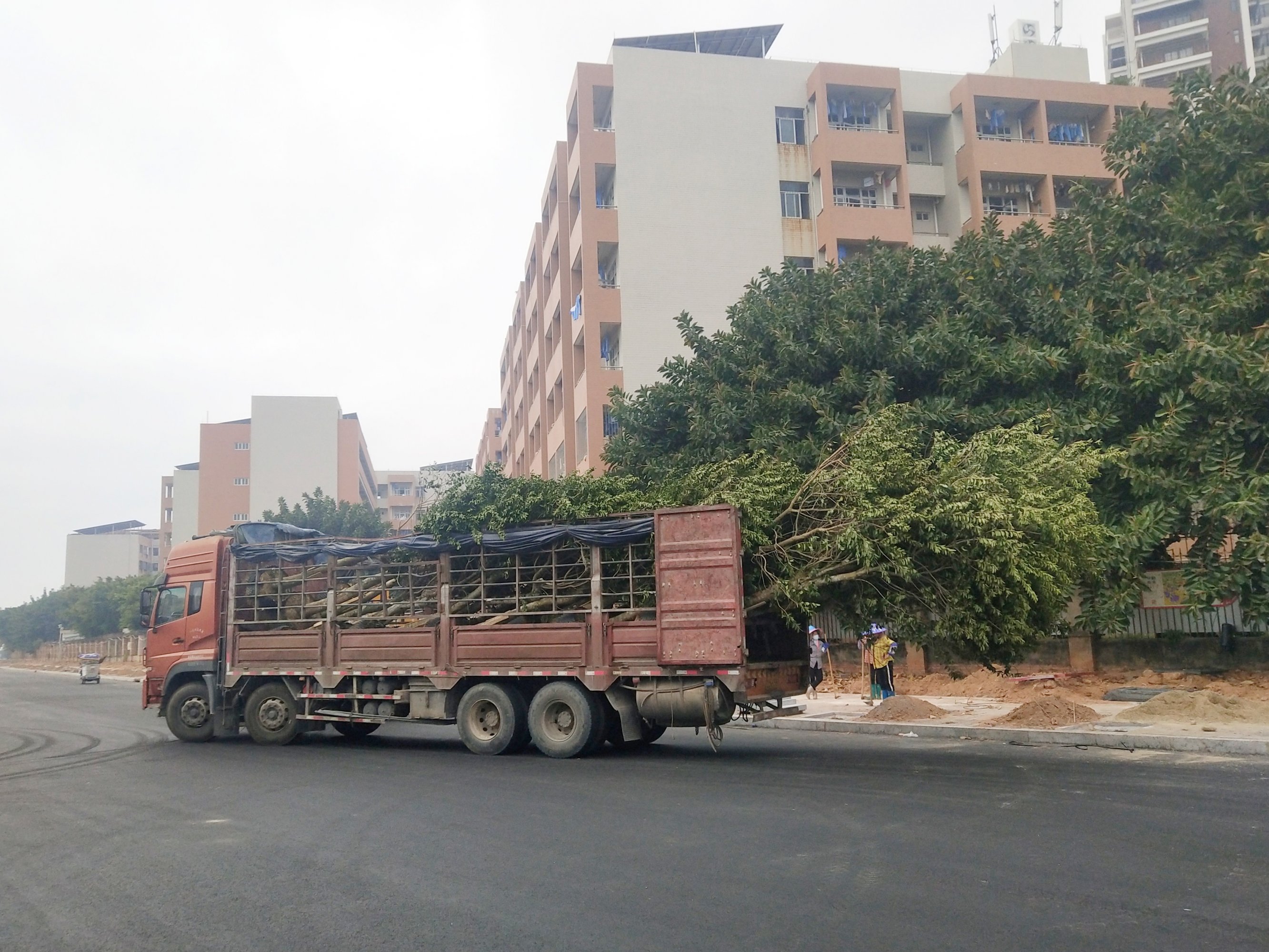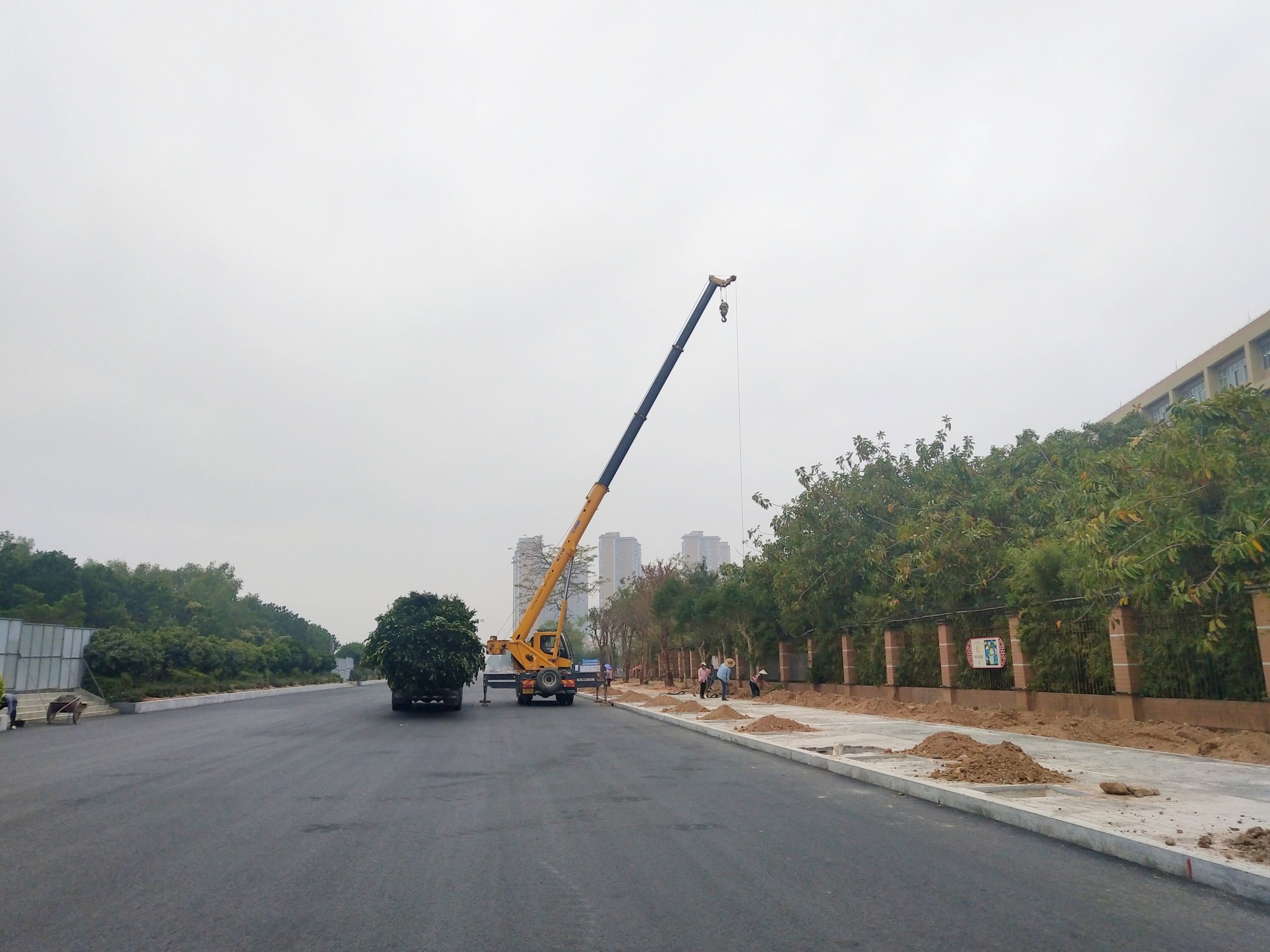 坐着共享见在海滨大桥那边装卸,并准备种植,不知是什么样的树,没细看,