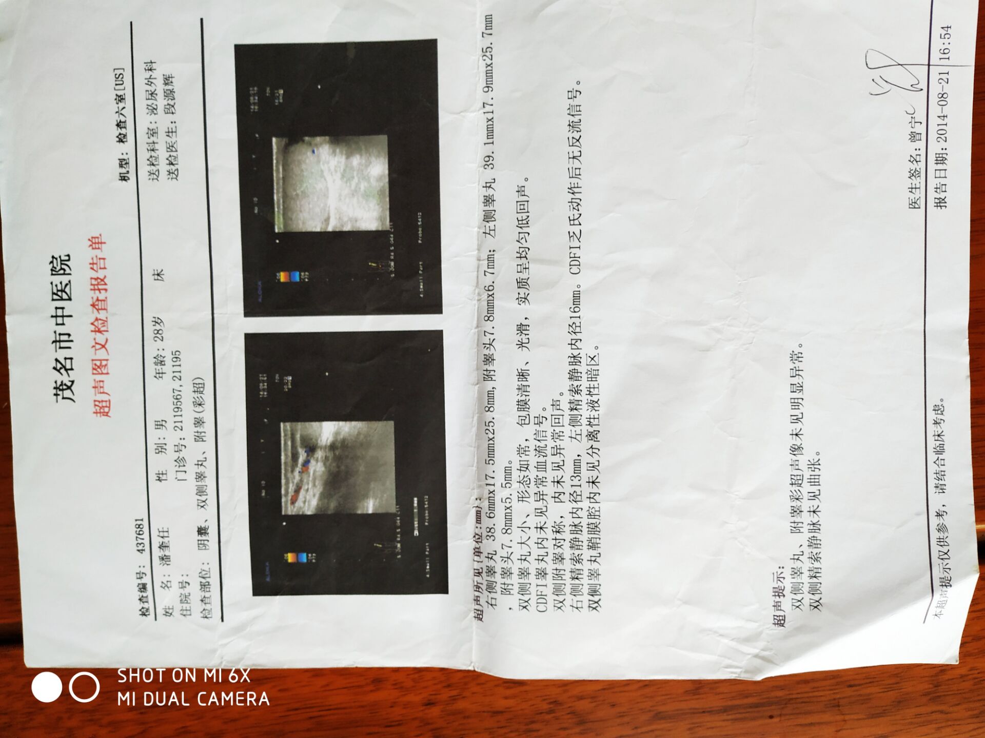 彩超。黄主任请看看。