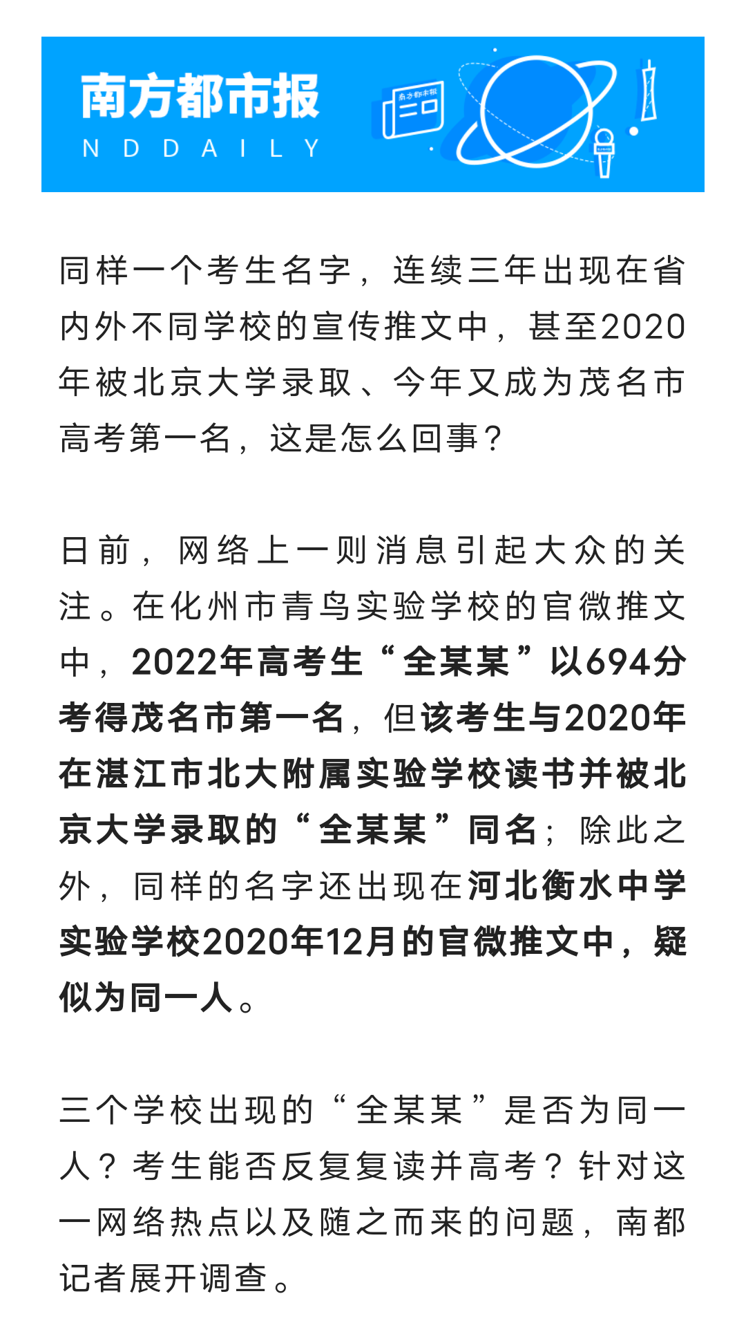 哈 哈哈在电白 学前班 注册 2021-07-02 消息 59 反馈评分 8 点数 0 2022-06-25 #161 四哥 说: 市直一中开放抽签入读,取消奥数班。体现教育公平。不知电一初中是否开放抽签就读。浏览附件359668 点击展开... 市一中取消奥赛班,却成立一个奥林匹克学校,已经向市教育局申请并得到批复。