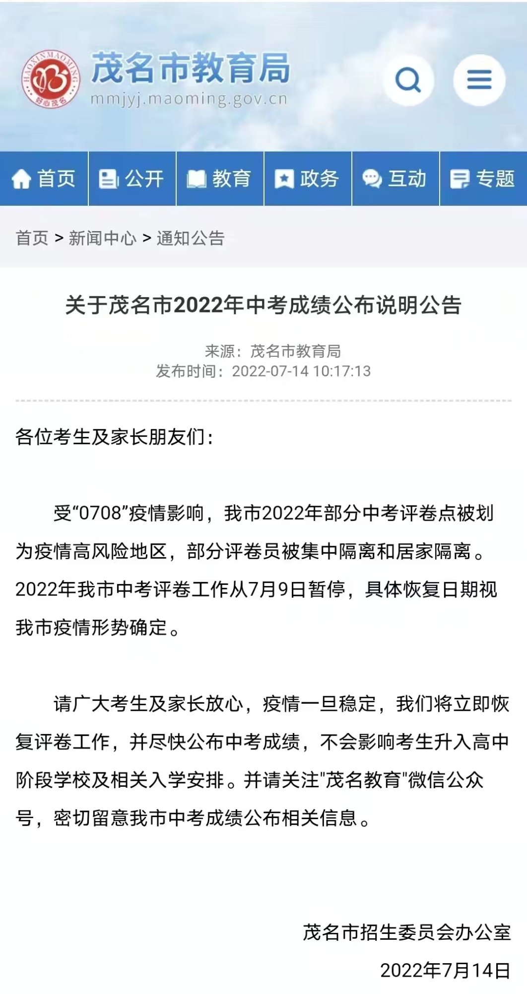 新闻 中考阅卷在二职被封了?