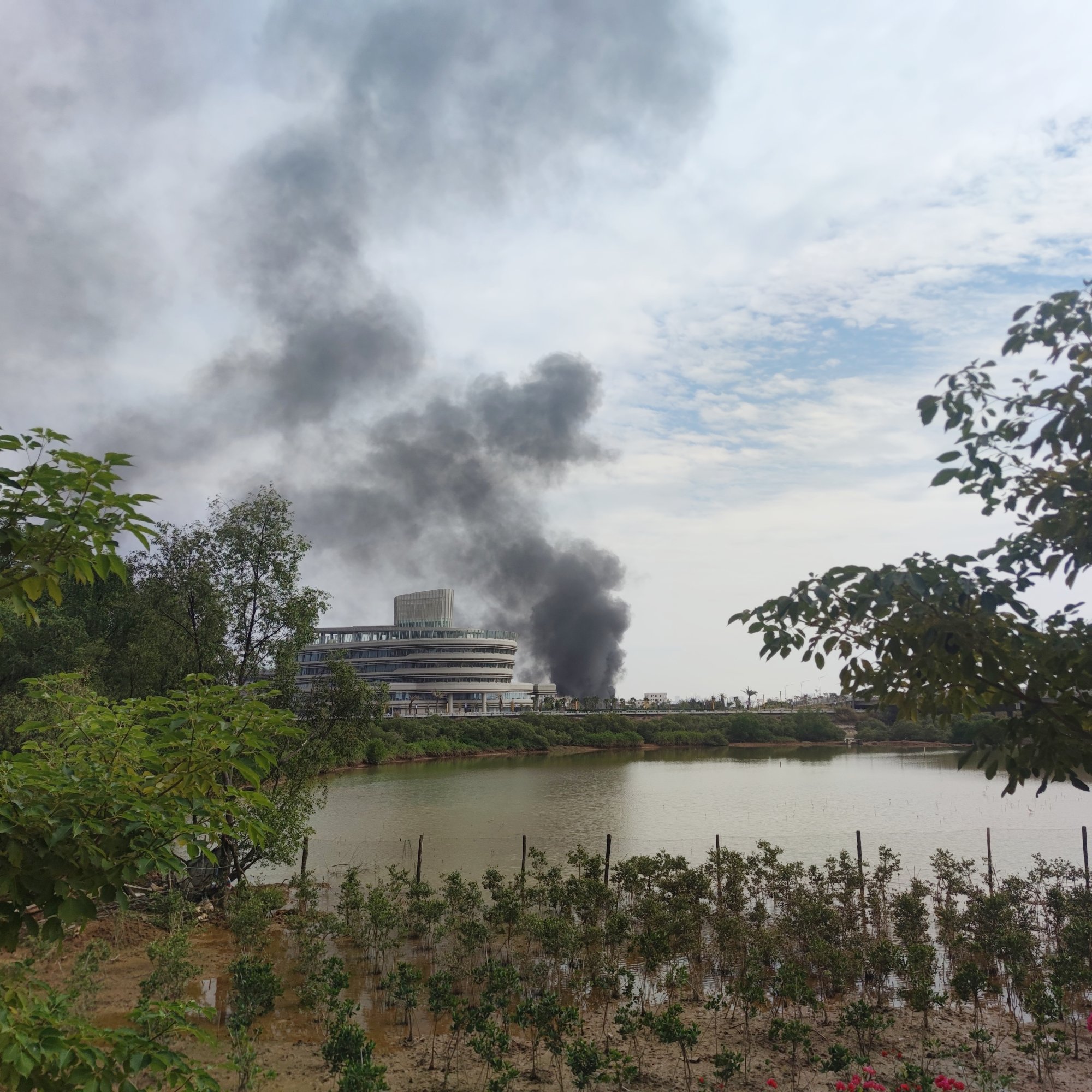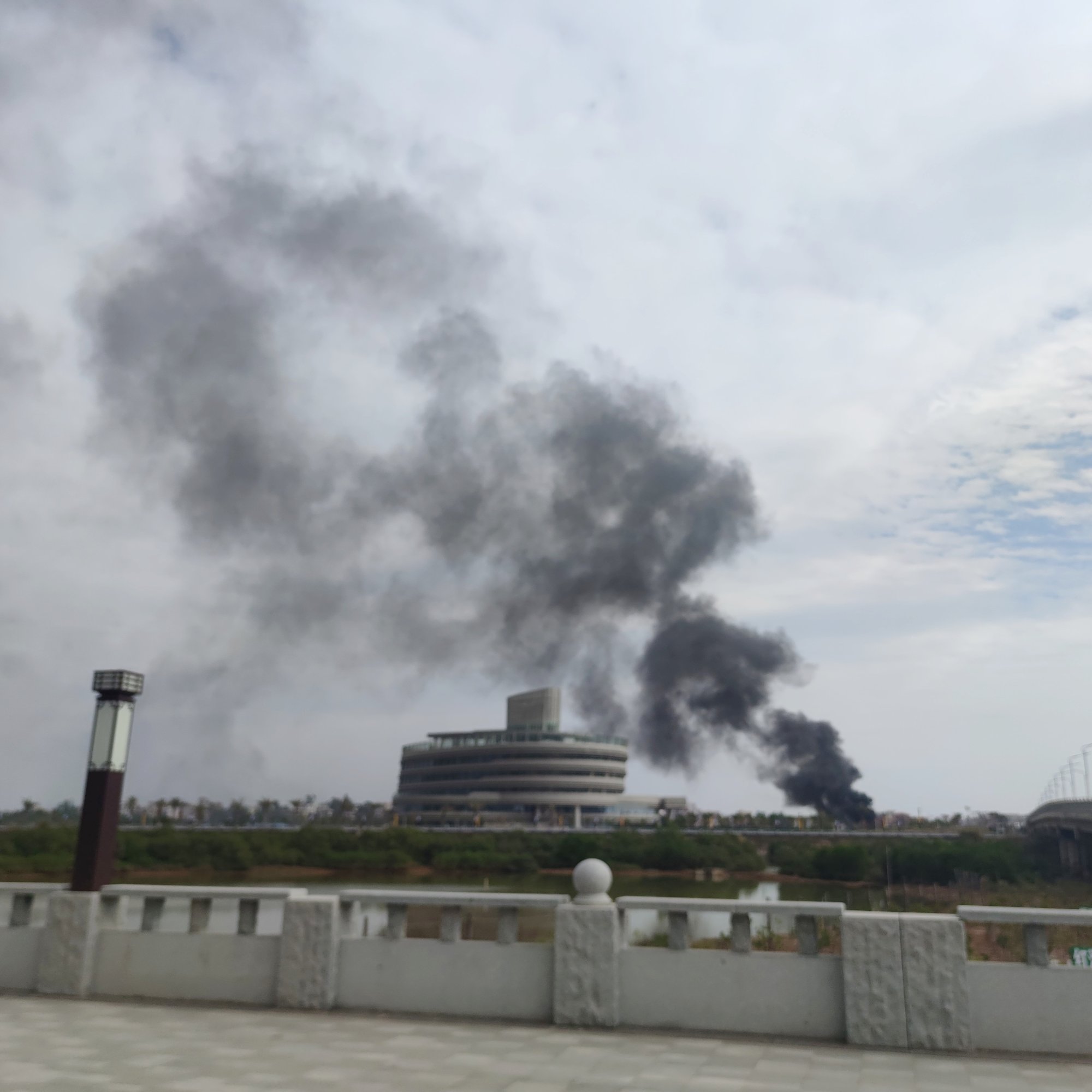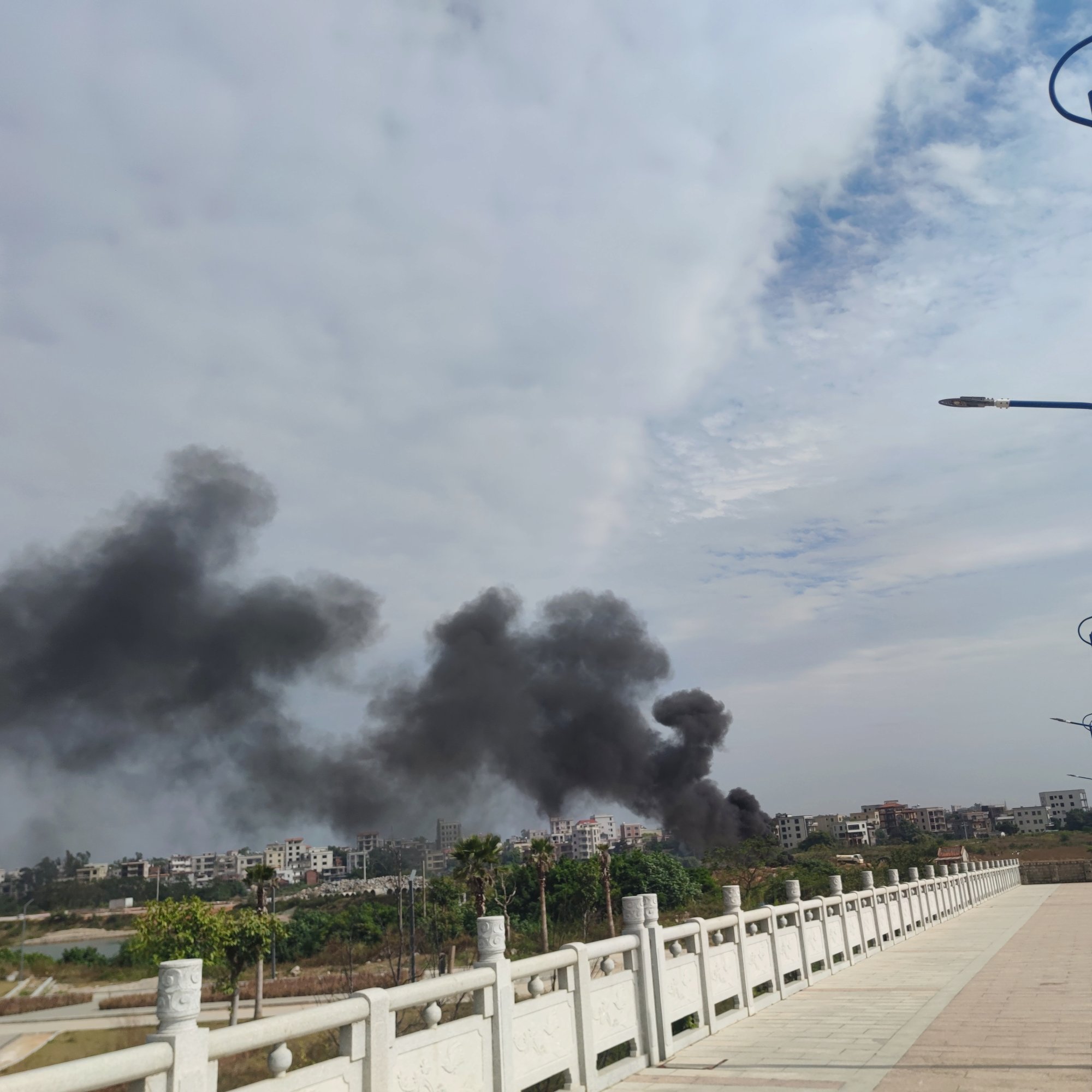 放好电摩走上海滨大桥,看着浓烟滚滚,我也不太敢靠得太近,不知是何原因着的烟火…?也就在我走靠近桥中间的时候,远远就听见有几辆消防车鸣笛快速赶过来…