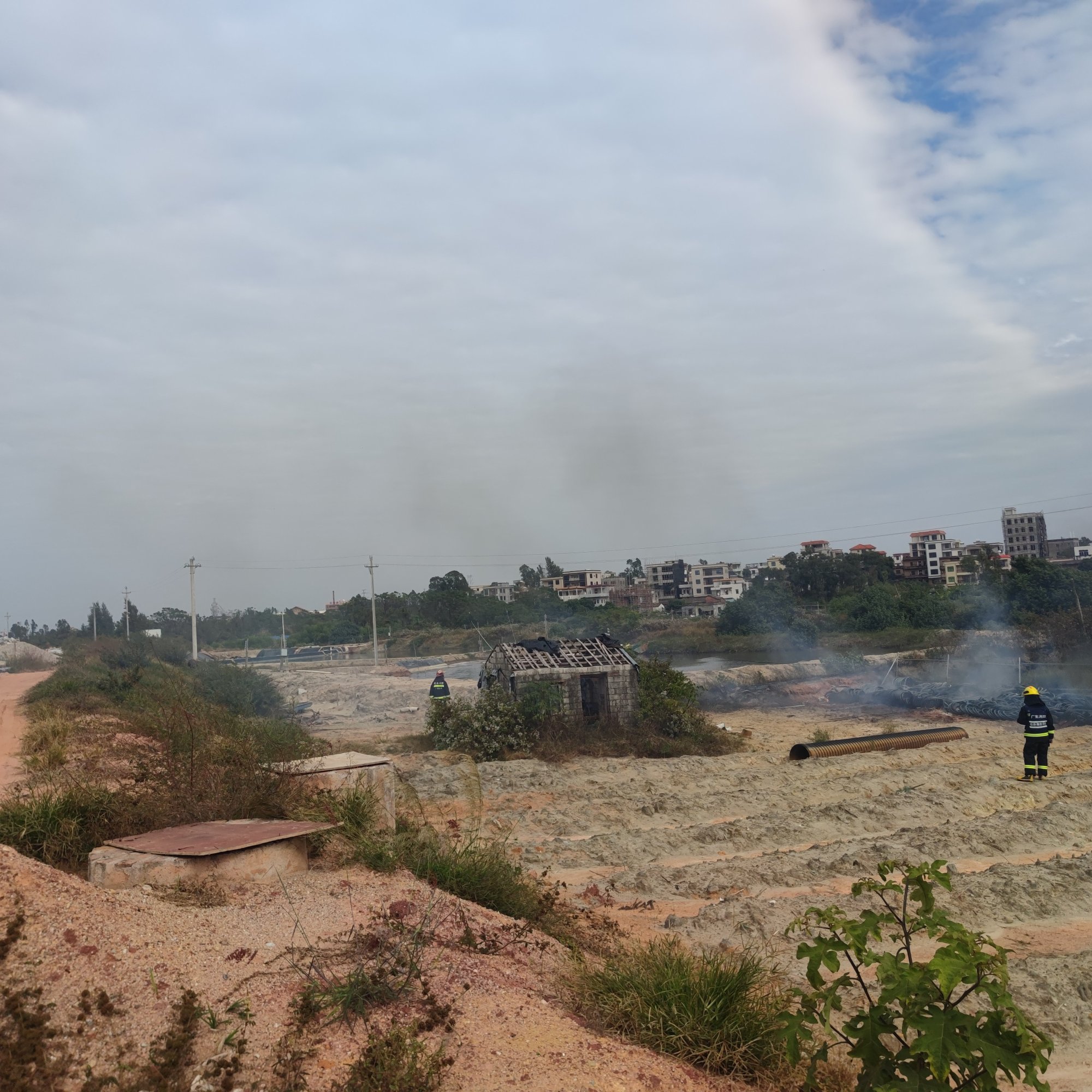 再过了许…许…,我见那烟火续渐微小…也就慢慢离开了现场,但几辆消防车与消防员们还在现场…后续就不清楚了…而我也就走去拿电摩走了…风高物燥,小心烟火…