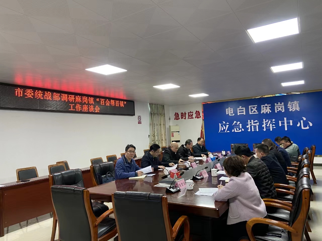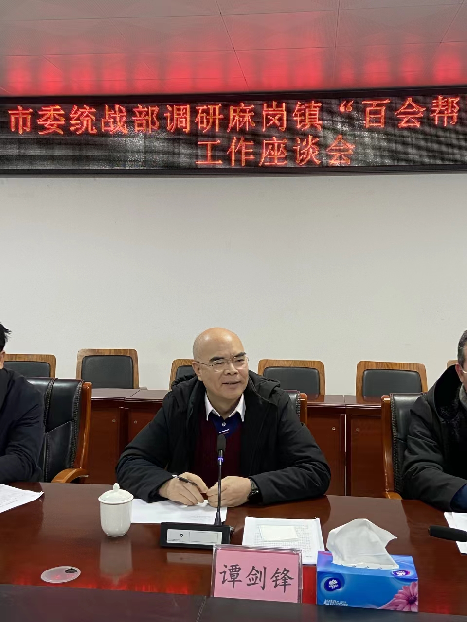 2024年1月25日下午,茂名市委统战部常务副部长谭剑锋带队到麻岗镇调研“百会帮百镇”工作并主持召开座谈会,市委统战部二级调研员、市非公党委书记陈兴权,区委常委、宣传部部长罗亮,区委统战部常务副部长莫伟凌和麻岗镇党政班子及村支部书记参加会议。