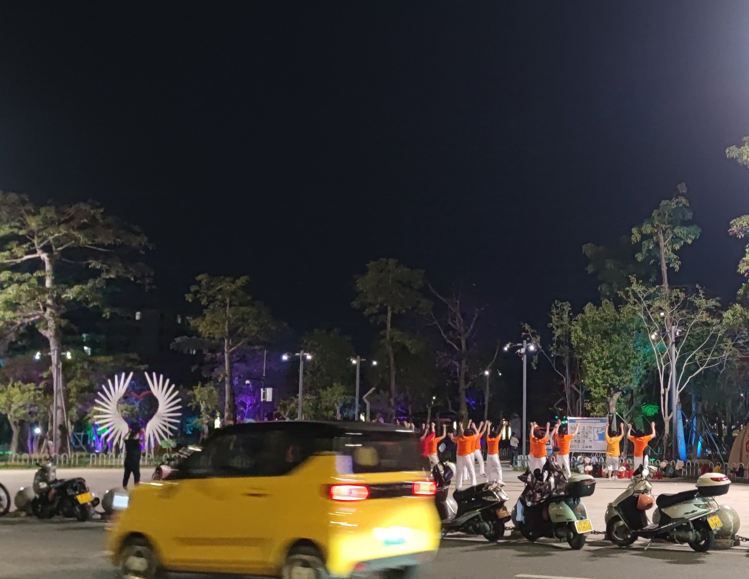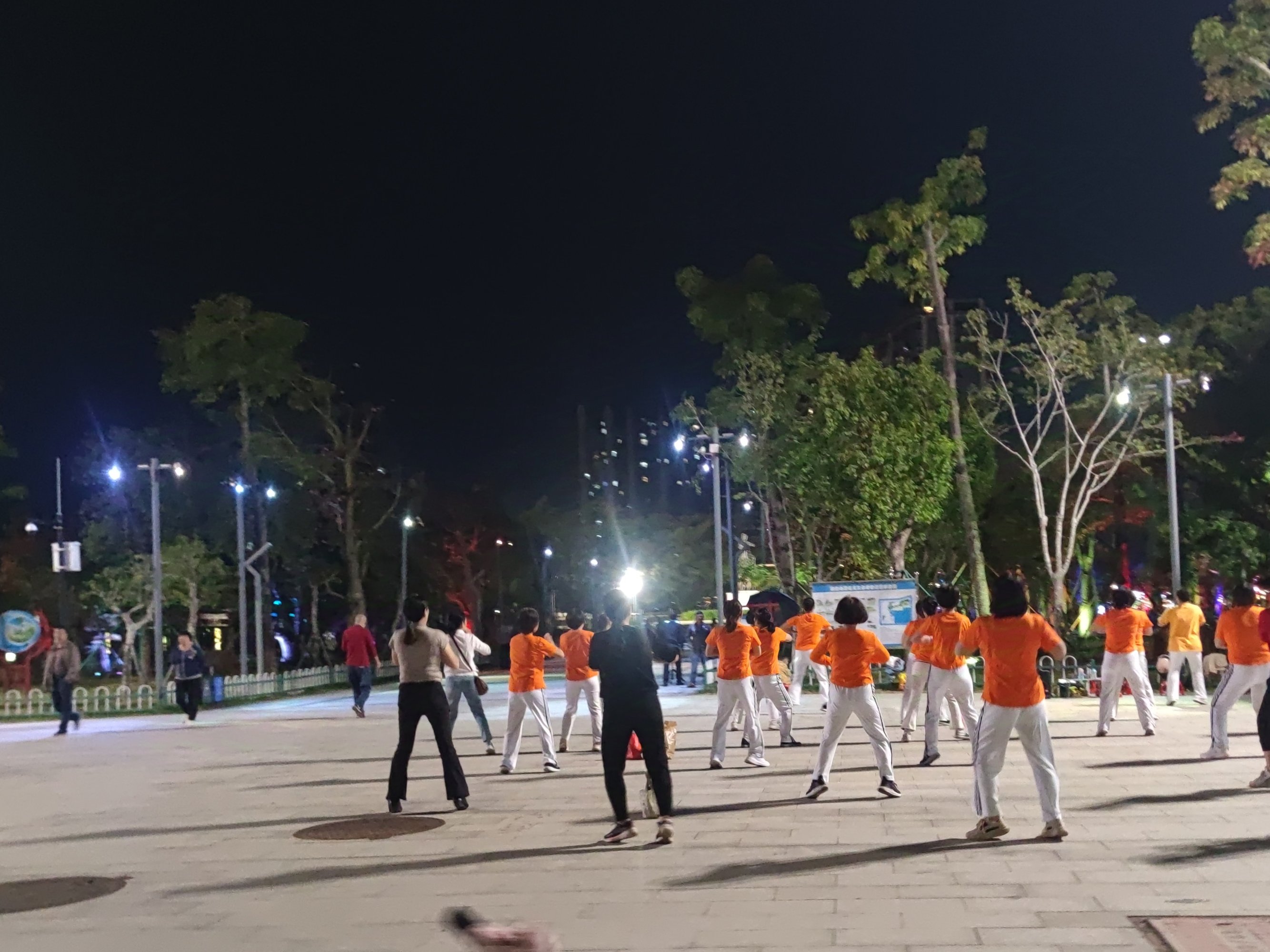 而在近住海堤路的东湖东门这个广场,时常都有些广场舞者在起舞,而广场的周边也警车有警员等等穿制服的人员在巡防,或许也好吧,起码有些安全感吧~