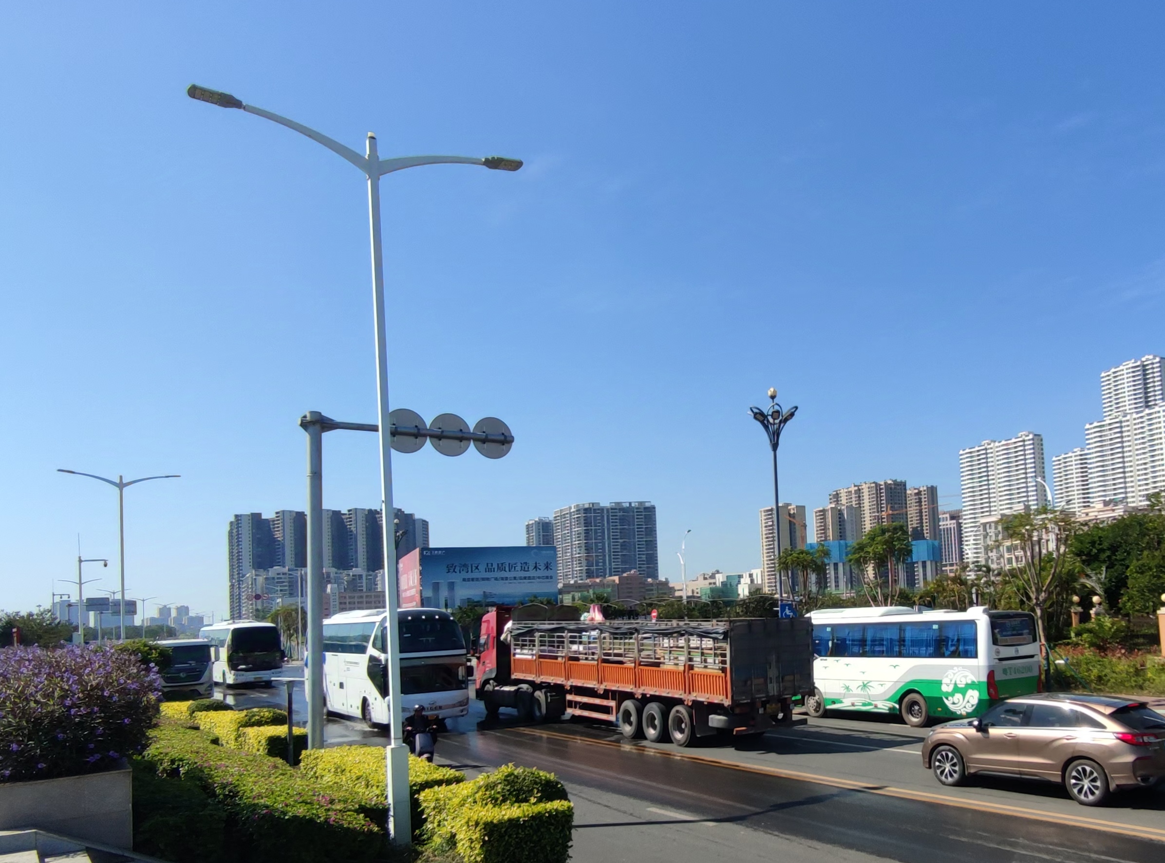 经过海堤路,见有一辆辽A的旅游大巴的到访~,其实那海堤路时常经常有旅游大巴,中巴,自驾等等的远方近方的亲爱的游客们的到来的~,后想看下亲愛的游客的上了车开走,我想并尾随下?可惜两个轮电摩追赶不上六个轮的旅游大巴车~ 您的浏览器无法显示此视频。