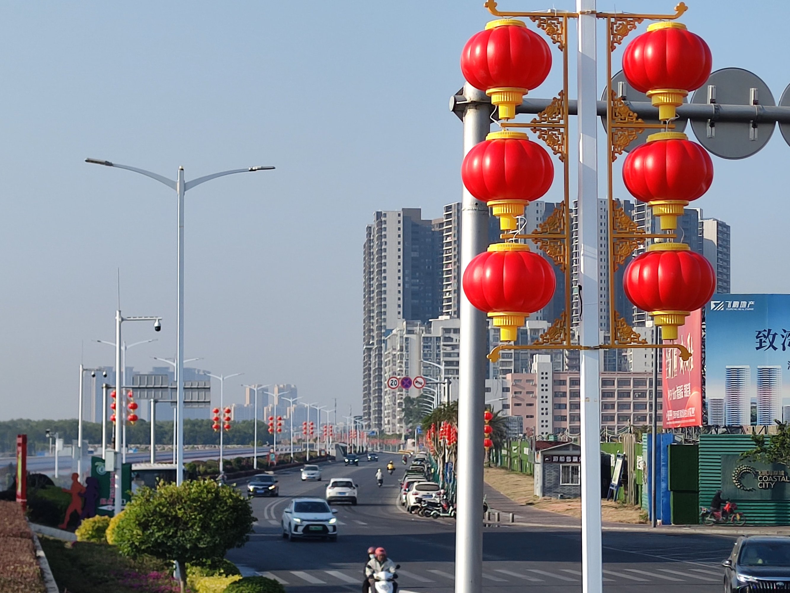 上个星期就见有施工人员在挂了,只选择些路段地方拍摄下而已