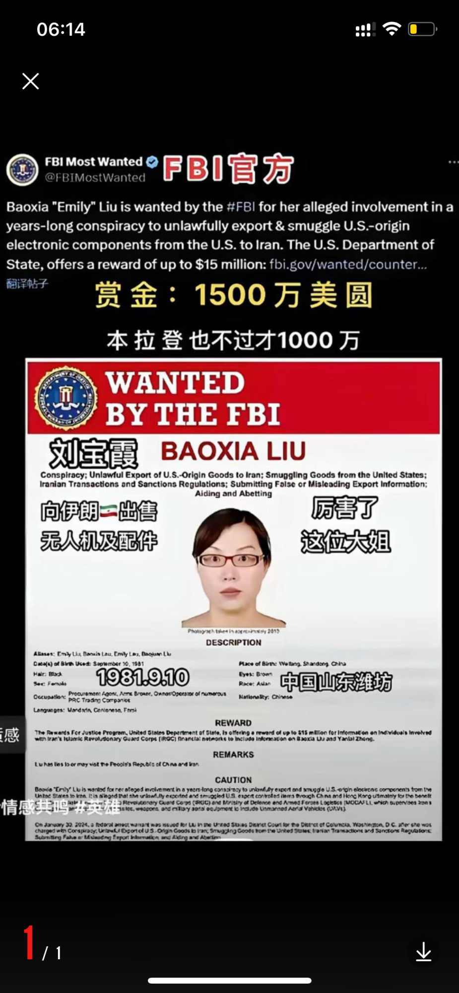 美国悬赏 1500 万美元缉拿王少云…