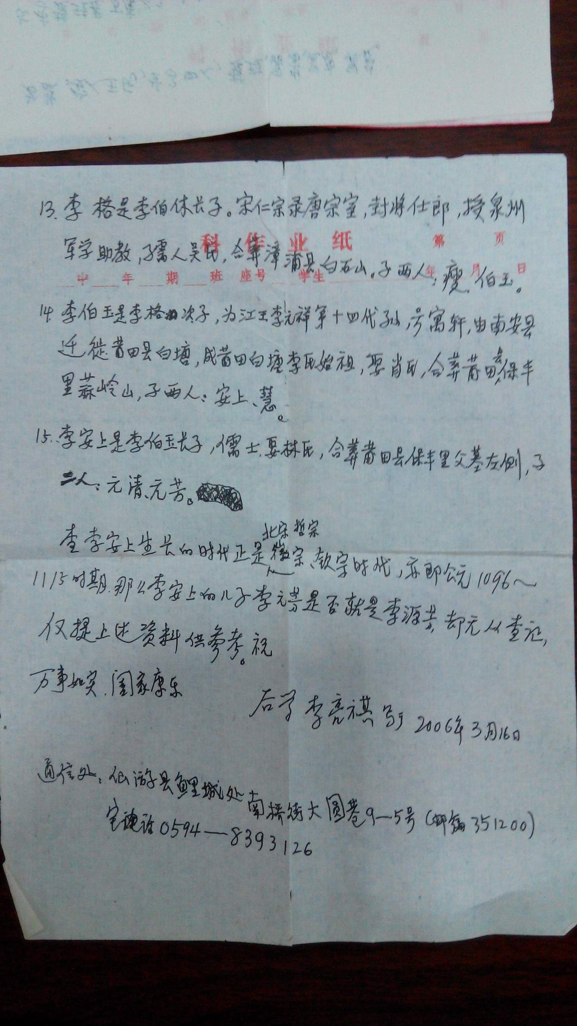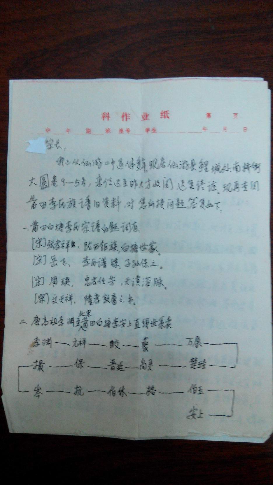 本人致函福建宗长查询有关祖先迁移的事项,得到函复如下: