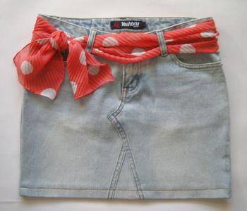 心爱的牛仔裤穿的时间长了,破旧磨损了。扔掉又好可惜,想想办法让我们变废为宝吧! [attachmentid=37609] 一条牛仔裤 ,减开 [attachmentid=37610] 上面的做裙子 [attachmentid=37611] 裤腿的那部分做个包 [attachmentid=37612] 包链是那种裤链 很多哈日小店有卖 小圆牌是TIFFANY的装饰环 [attachmentid=37613]