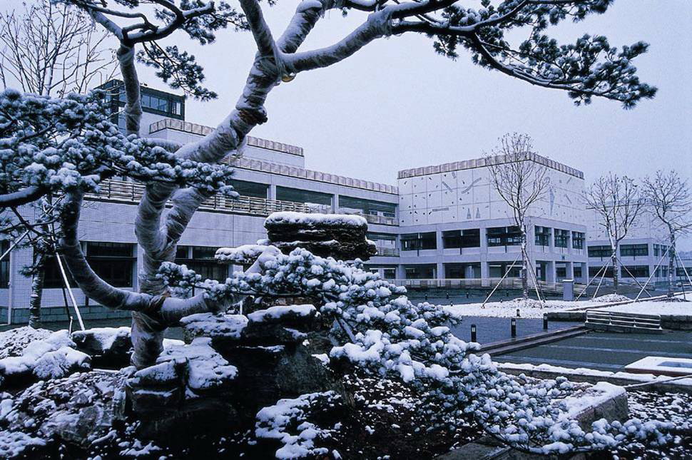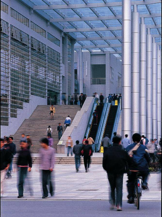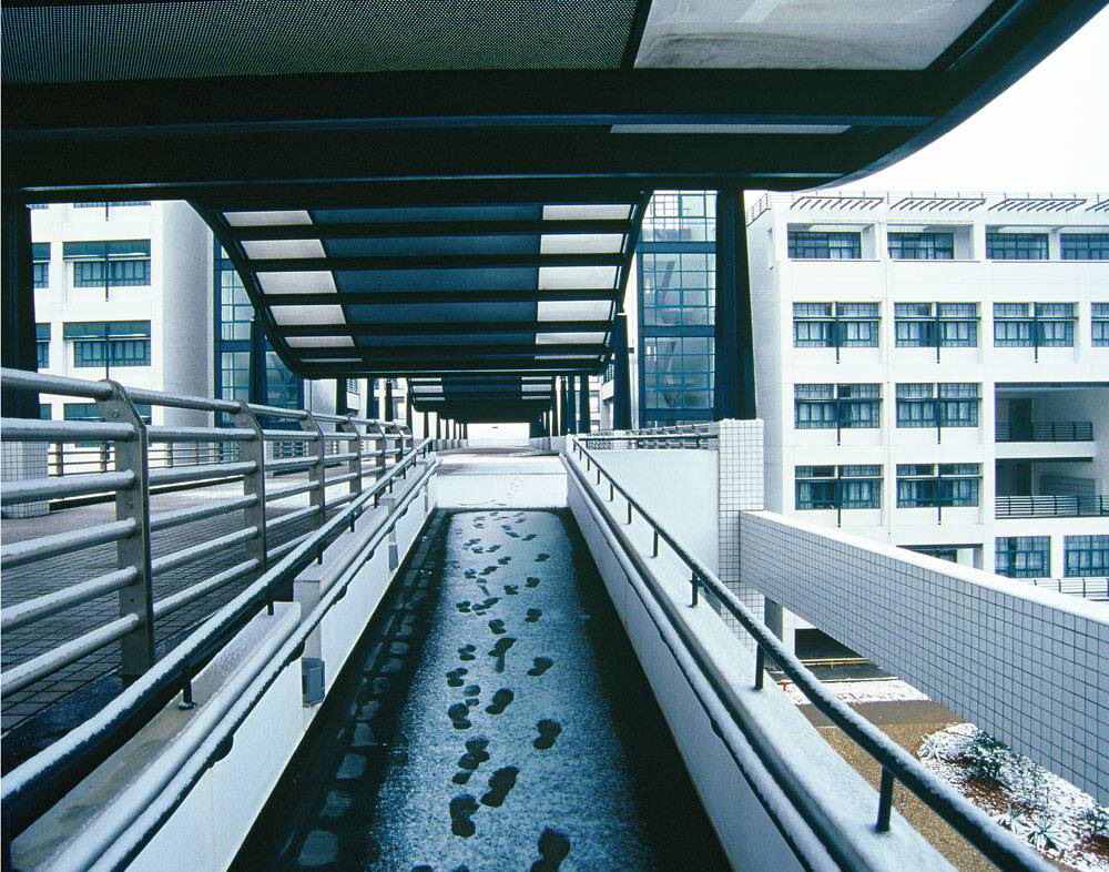 这个是东区教学群,采用古代园林的连续分布原理,中间有条贯穿所有教学楼的正弦函数走廊...