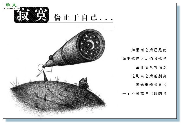QUOTE(画出未来 @ 2005年10月07日 Friday, 10:07 AM) 寂寞伤止于自己? 这句话我有点不懂? [snapback]751467[/snapback] 无聊的东西,一点文化价值也没有,比我写的还烂