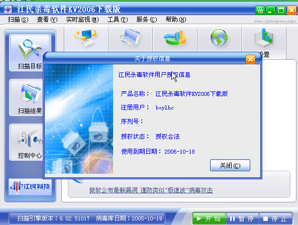 打电话申请了80个Q币,在江民网站买了一套正版KV2006