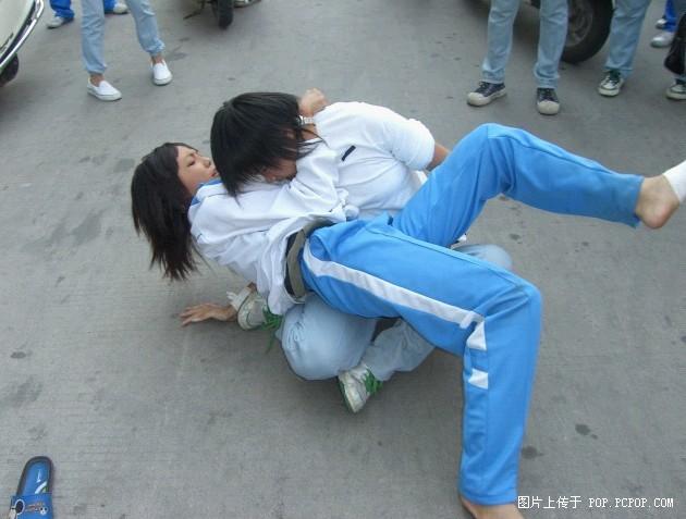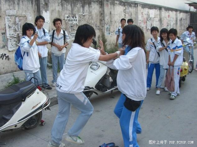 校服的那位穿拖鞋打架,最后还掉了一只!