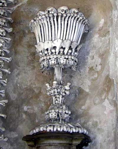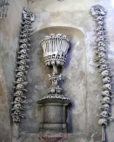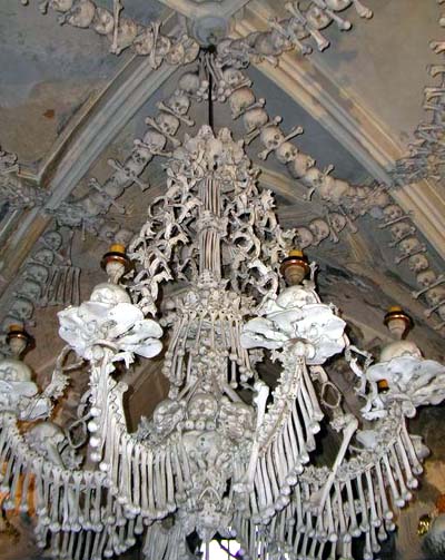 在东欧的捷克有一座建于14世纪的人骨饰教堂,这里的天花板、墙壁上尽是人骨串成的装饰品,据统计,这些饰品大约用掉一万具尸体。在1369年,一次瘟疫使3万人丧生,尸骨遍地,因此教堂当局决定用未葬的尸骨装饰教堂。神学家表示,天主教视死亡为神圣的事,死后将尸身献给上帝,象征无上的赞美,故“人骨装饰品”不值得太惊讶。这座教堂平常并不对外开放,只在每年11月20日(相当中国的鬼节),才让一般民众入内祈福。