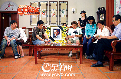 图:昨日,在康家的大厅里,康家老少围坐在郭昶遗像四周,热泪盈眶……(广东电视台提供)