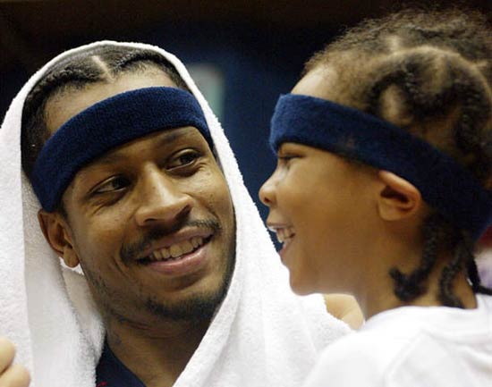 在Iverson的胸前,是他女儿tiuara和儿子deuce的名.