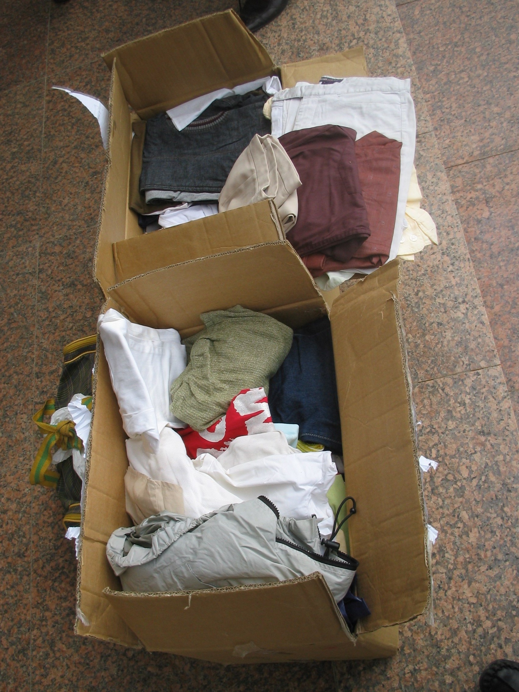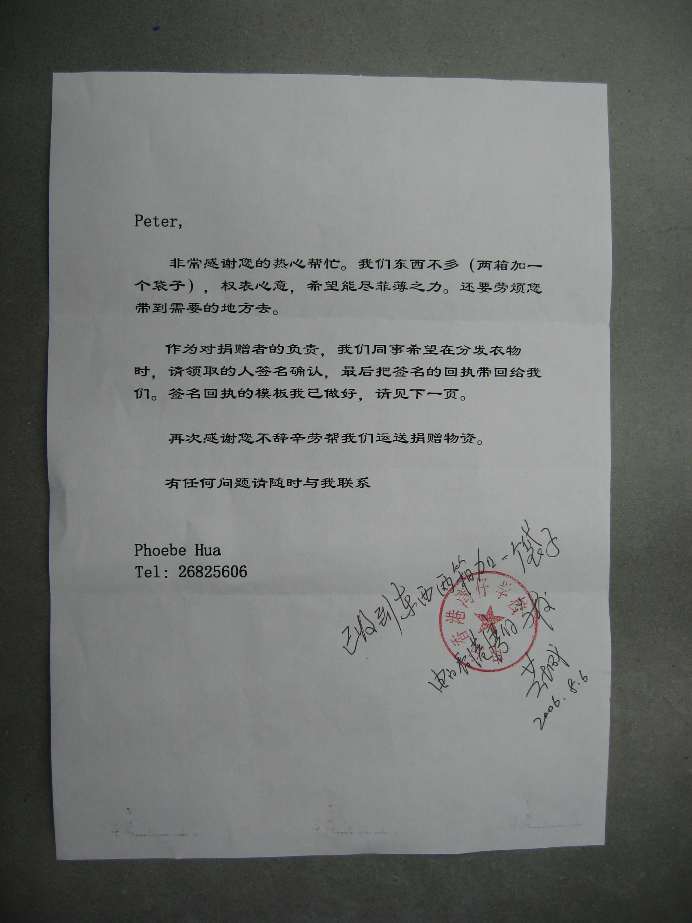 QUOTE(四中乐叔 @ 2006年08月07日 Monday, 07:40 AM) [snapback]1422321[/snapback] 8月6日上午,"礼"轻情意浓,带回二箱沃尔玛公司物流部同事捐出的衣服. 期待下次组织大型一点的捐赠活动.