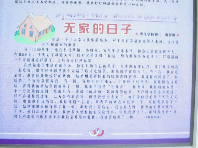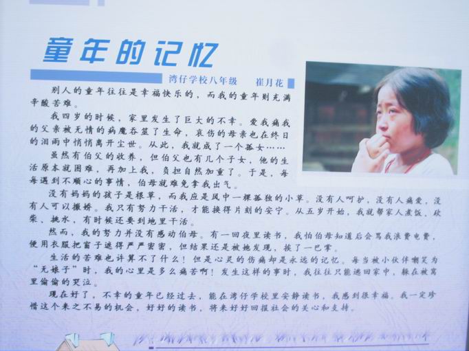 QUOTE(相对论 @ 2006年08月06日 Sunday, 10:29 AM) 不是说去那个学校吗? 还有什么含义? [snapback]1420715[/snapback] 刚回到深圳,今天上午去了湾仔孤儿学校.图片待有空再上传.