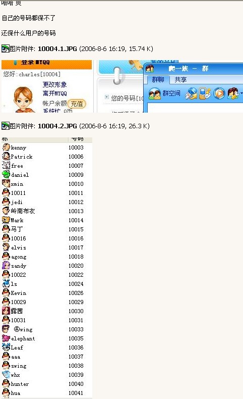 B C ๑۩۞۩๑๑۩۞۩& 荣誉会员 注册 2004-11-19 消息 18,261 反馈评分 0 点数 61 年龄 37 2006-08-06 #2 上号的整个ip段,等一下上什么号码封什么号码。以拿里面的资料去卖就更是滑稽了,买到资料的人只能算倒霉了。 呵呵