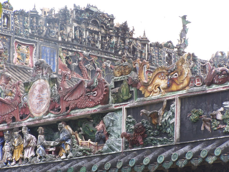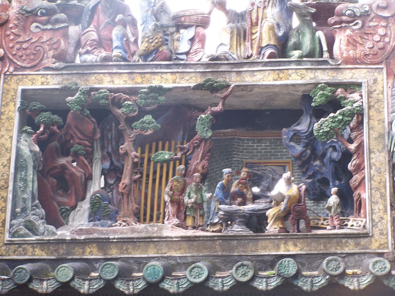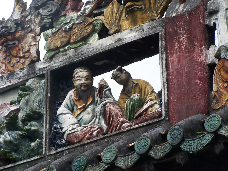 屋檐上的彩塑