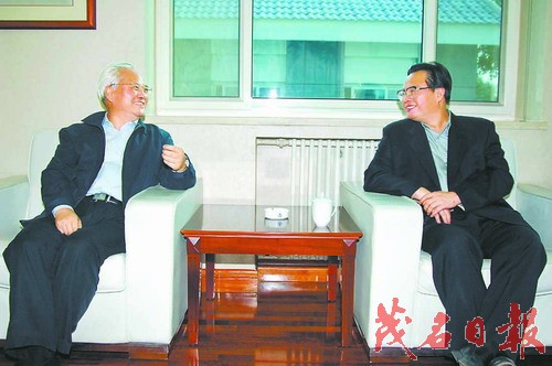 金秋十月的北京,秋高气爽,风景怡人。在民政部部长会客室,李学举接见了周镇宏一行。周镇宏讲明来意后,简要地汇报了我市“告别泥砖房工程”的基本情况,一边展示有关工程宣传图册和规划图,一边列举相关事例作具体说明。听了周镇宏的汇报后,李学举说,听了汇报,特别高兴也很激动,茂名在理解构建和谐社会、落实科学发展观上有新意。李学举指出,构建和谐社会、建设社会主义新农村要从解决群众最关心、最直接、最现实的问题入手,切实维护群众特别是困难群众的利益。当前困难群众最关心、最直接、最现实的就是住房问题,在这方面茂名解决得非常好,“告别泥砖房工程”就是一个群众看得见、又直接受益的具体行动,是一件大好事。李学举勉励我市一定要把接下来的工作抓实,继续加大治理力度;政府要把投入重点放在公共事业上,放在农村上。同时要以“告别泥砖房工程”作为切入点,推进农村其他工作的开展。汇报结束时,李学举说:“等你们全部完成预定目标后,有机会我一定到茂名看一看。”