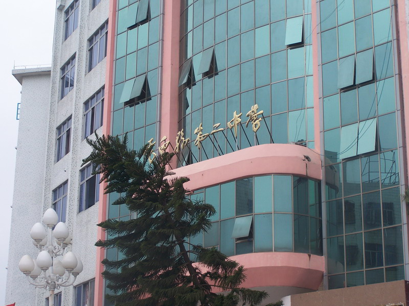 二中的大门的玻璃膜墙,倒是很有大都市甲级写字楼的样子