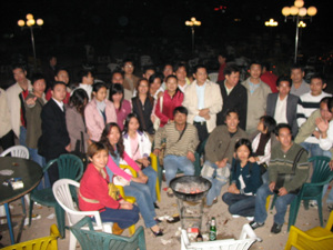 深圳电白老乡去蛇口海上世界烧烤活动图片 时间:12月9日 (周六晚上7:30-凌晨3:00) 地点:蛇口海上世界烧烤场 活动内容:自助烧烤/聊天(凌晨时分烧烤完毕,在附近找房间打卜克/麻将) 此次活动有70几位坛友老乡参加,同乡会南山分的李会长、郑会长等蛇口的老乡及家属共约有100多人参加,部分来自东莞、惠州、广州等地,凌晨约3点结束后,剩下30多人他们回到工业区招待所打扑克聊天等。 这是结束时的合影。